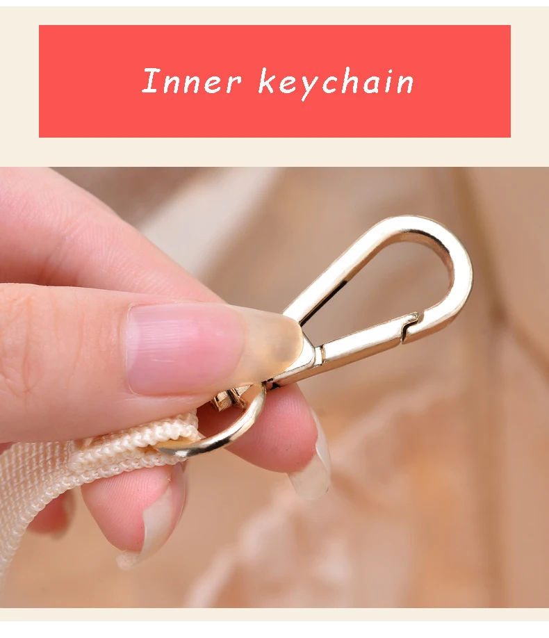Main compartment: 4 open pockets, a zippered wall pocket, a water resistant zippered pocket and a key clip.