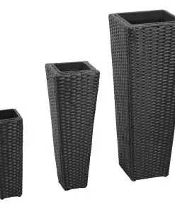 This 6-piece plant container set consists of 3 vases with 3 removable inner pots. These lovely flower raised beds are made of high-quality poly rattan. This material is weather-resistant. It also has an iron frame and zinc pots, these are very durable so you will be able to enjoy them for a long time. There are three different sizes: large, medium and small. With this special arrangements you can create a beautiful oasis in your own on your terrace, balcony or garden.