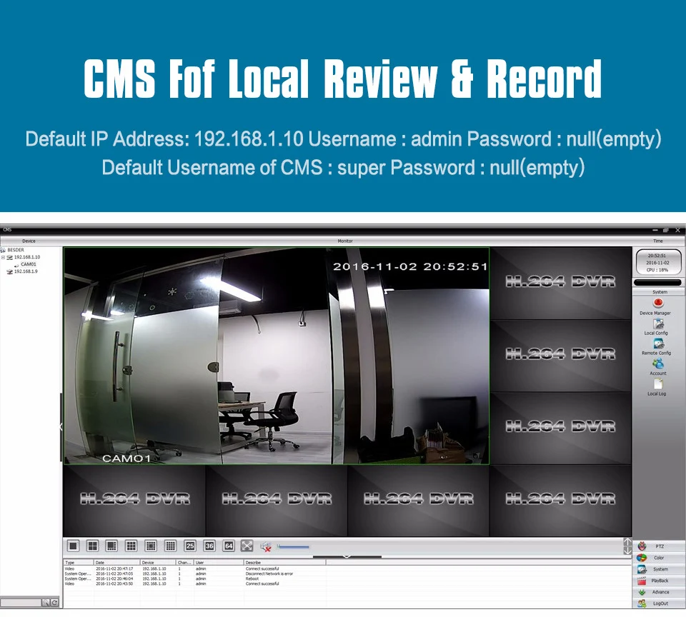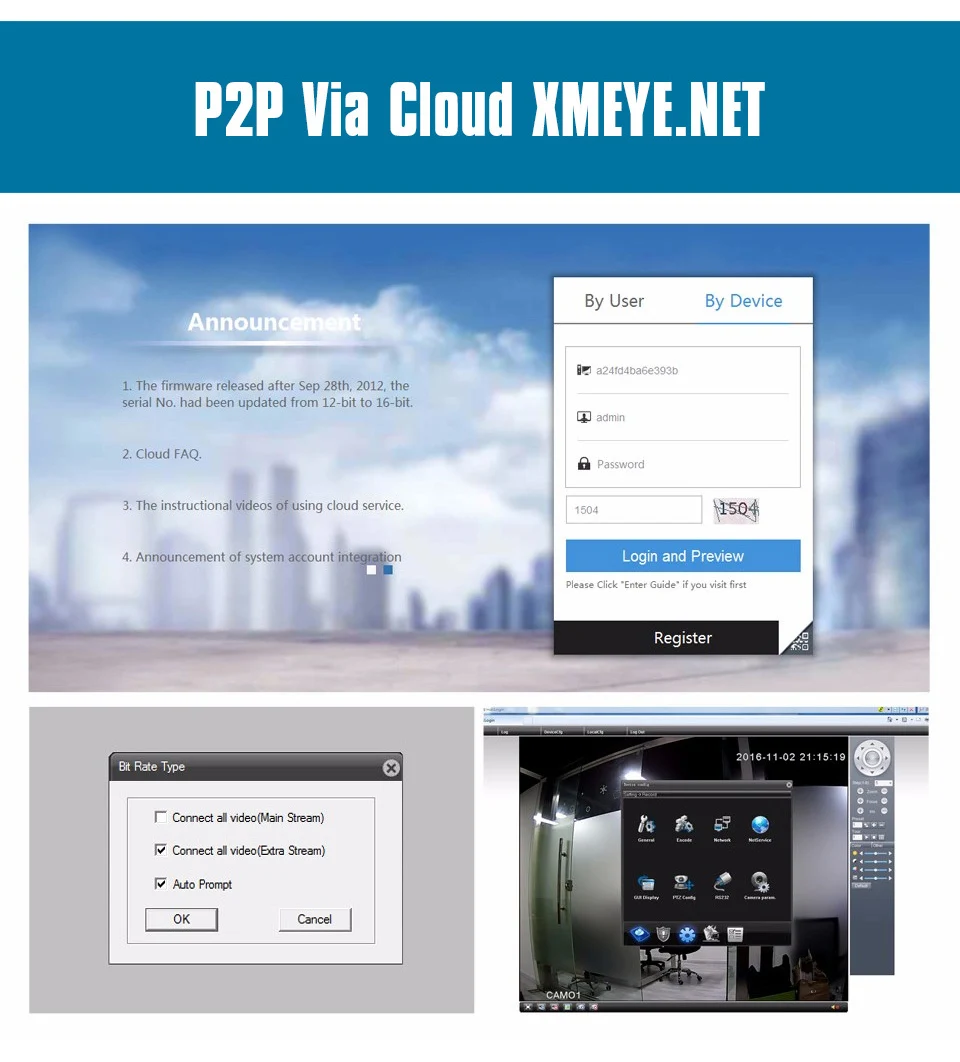 The P2P technology enhances the capacity, bandwidth and computing ability of the network system by allowing the entire client to provide network source. In conjunction with our DVR, users will enjoy a more flexible, reliable access to the recorded video without needing to download it like before.