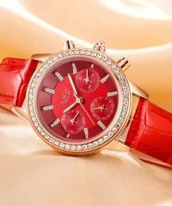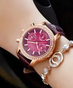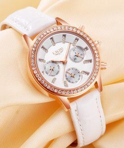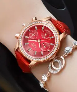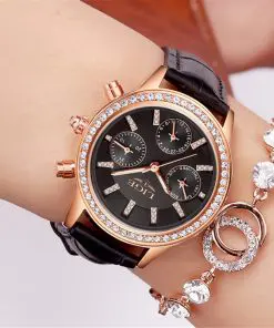 Casual Women’s Wristwatches with Rhinestone Decor and Leather Strap