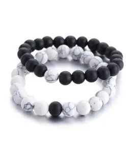 Classic Natural Stone Yin Yang Beaded Bracelets, 2Pcs/Set