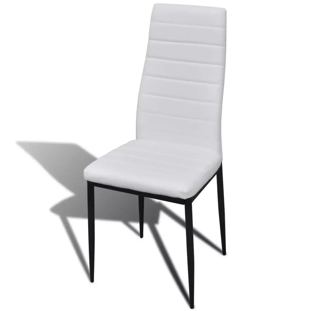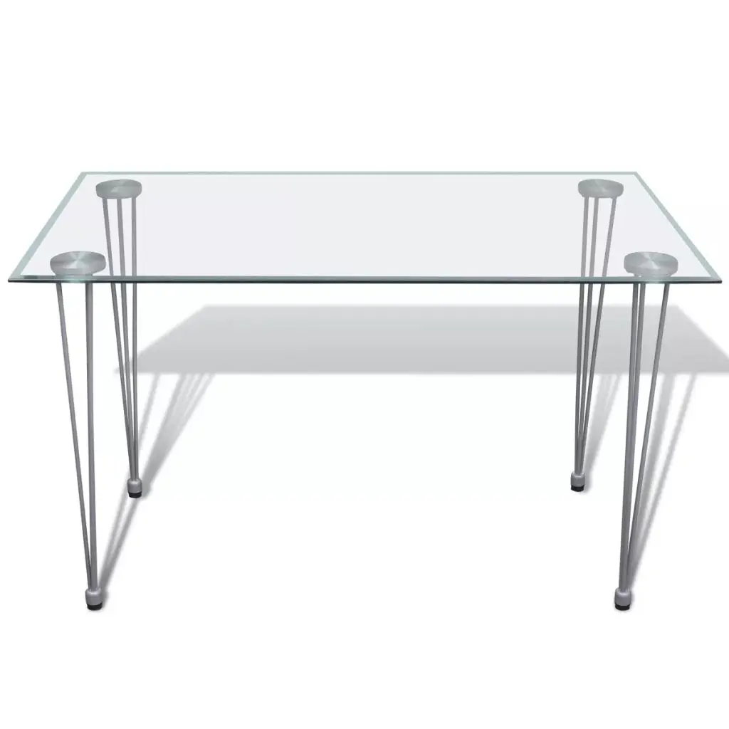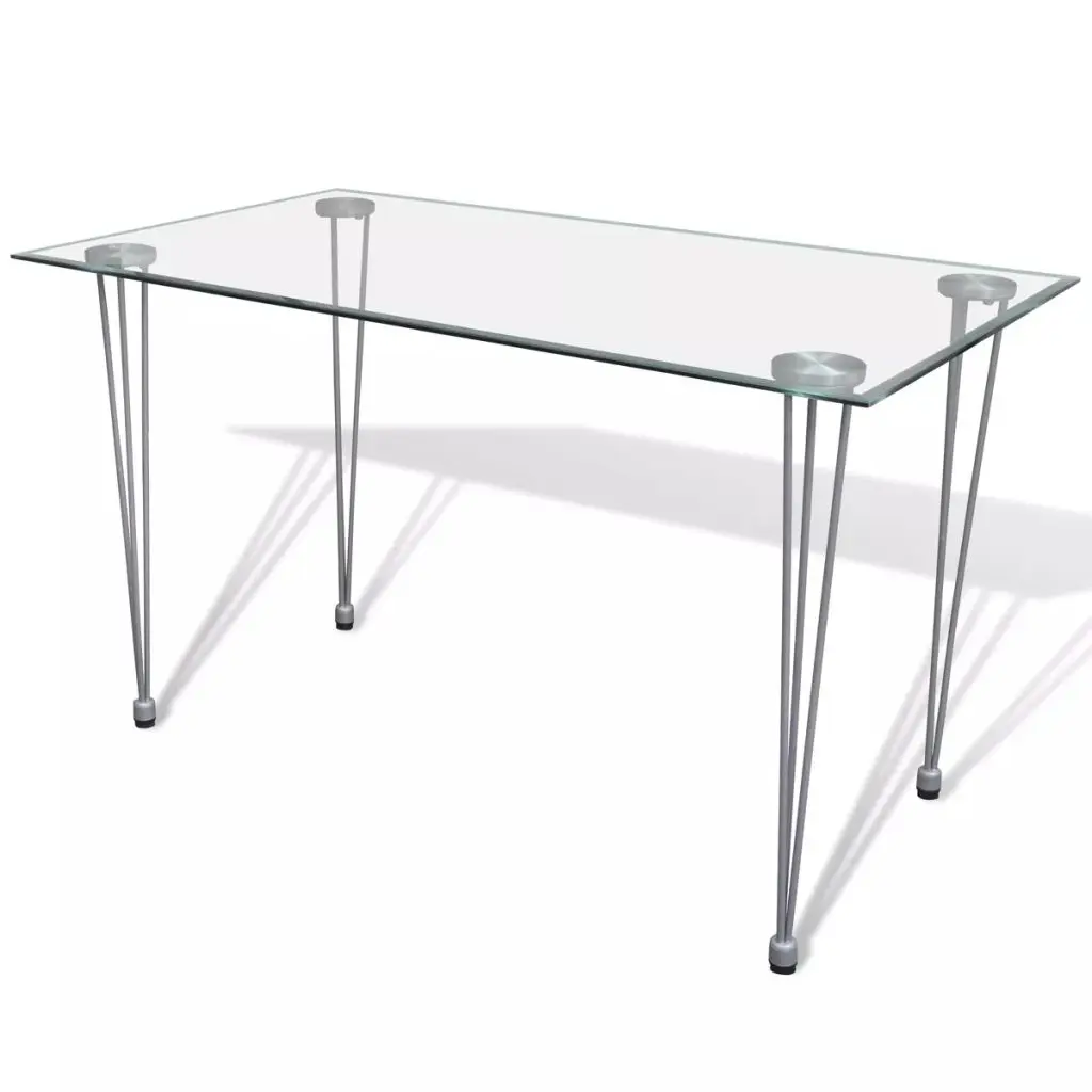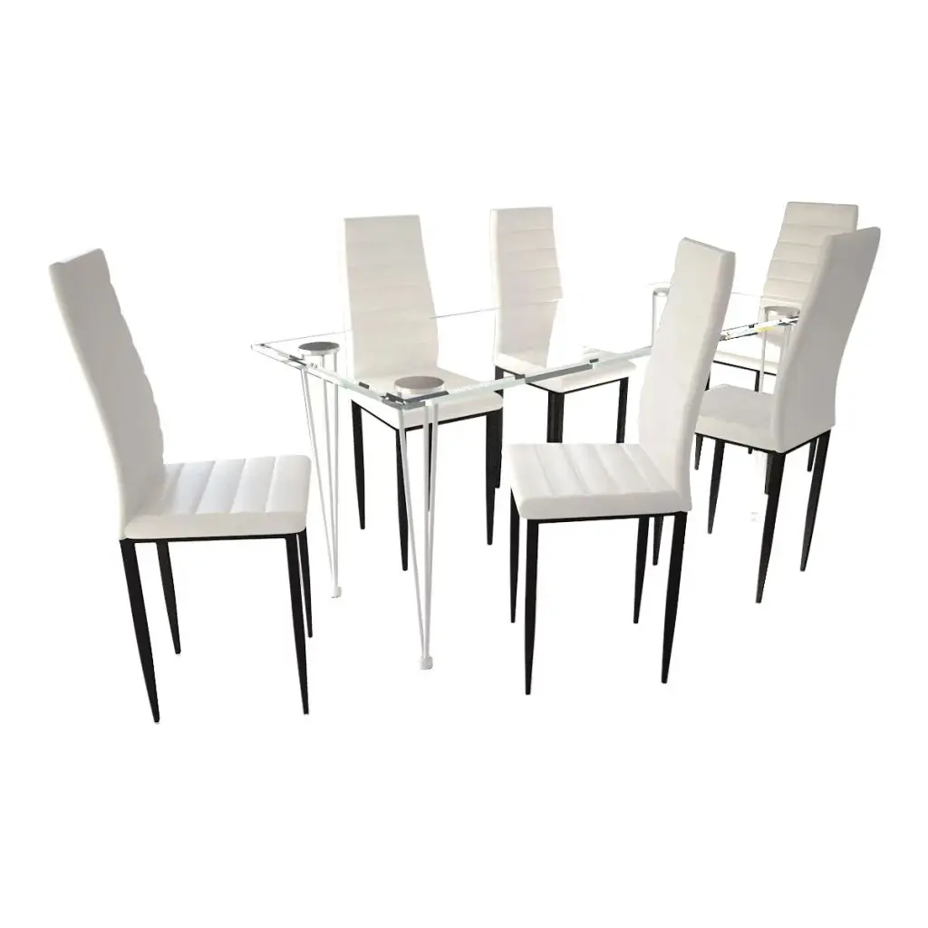 The sleek, modern dining set, consisting of 1 table and 6 high-quality chairs, will be a great choice for your dining room or kitchen. Its simple elegance will add a luxurious touch to any dinner. Thanks to the wear-resistant and stain-proof artificial leather and its thickly padded seat, the chair is very comfortable. The dining table with its tempered glass top features powder-coated steel and plastic legs, which make the table highly stable and durable. It is also very easy to clean with just a damp cloth. Delivery includes 1 glass table and 6 chairs.