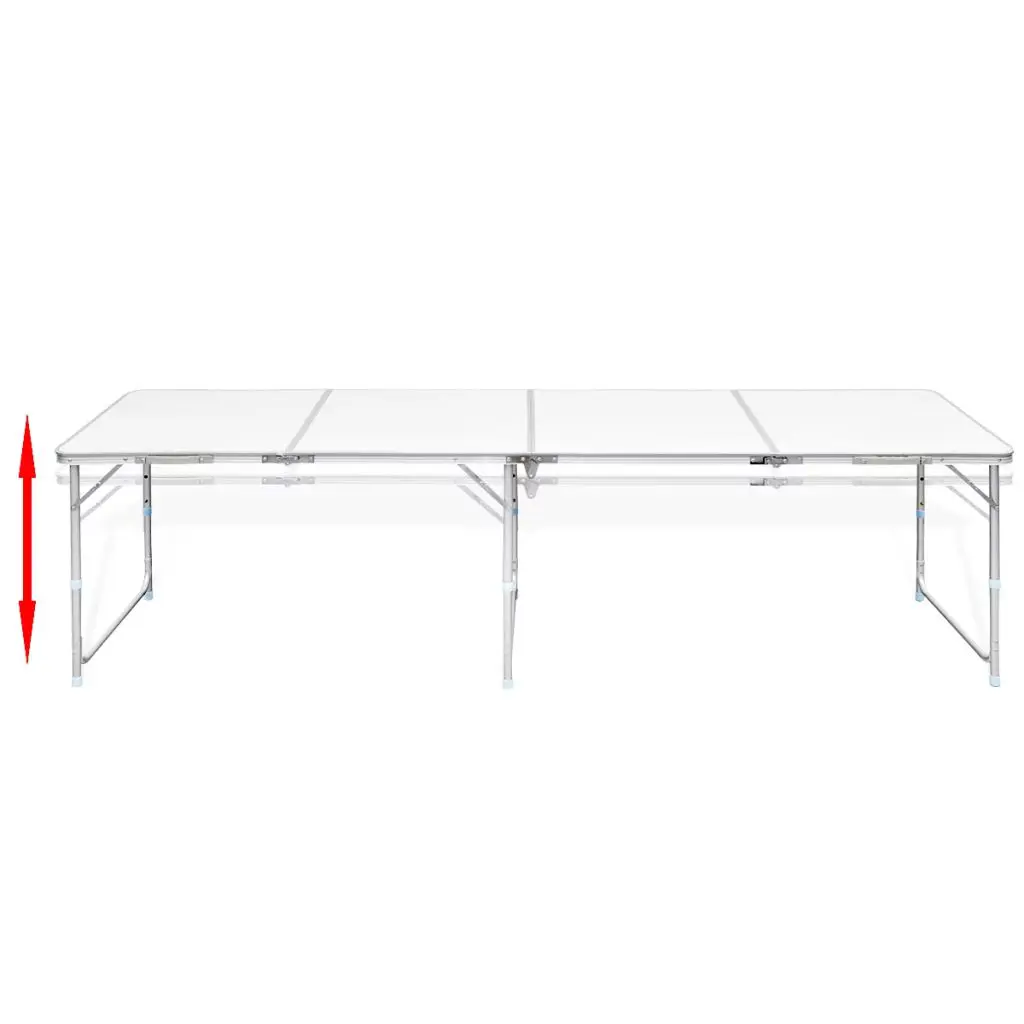 This foldable camping table with practical carrying handle will come in handy in kitchens, on patios, in gardens, and on picnics or camping trips. The table height can be adjusted to 55 cm, 62 cm and 70 cm. The camping table is light in weight. Thanks to the folding design, this camping table is easy to transport and can be stored away quickly when not in use. The carrying handle makes it very easy to bring the table with you when going out to have a picnic or camping trip. Thanks to the sturdy structure, this camping table has a high load capacity of up to 30 – 50 kg. Thanks to the metal frame and the robust MDF tabletop, it is highly stable and durable.