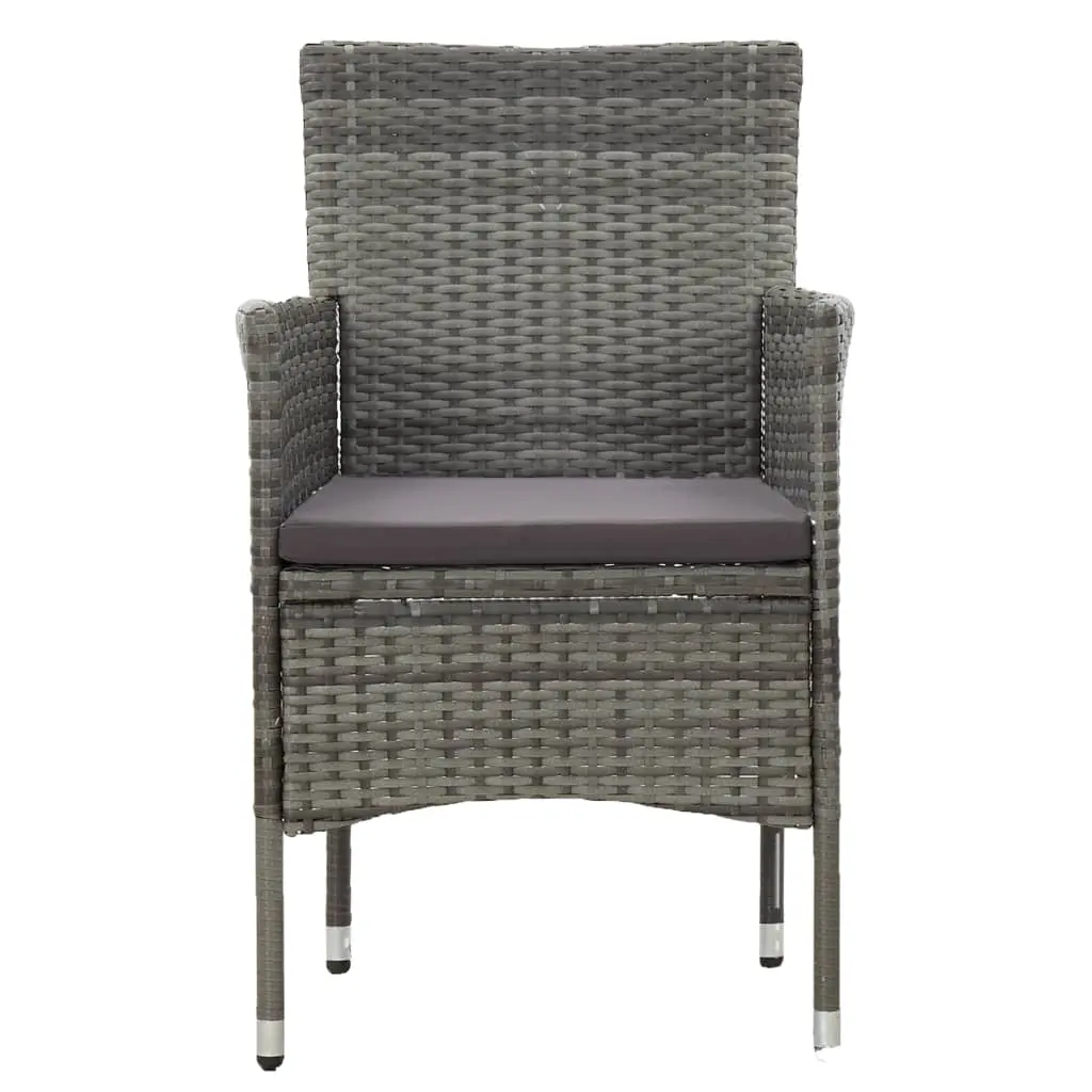 Add a hint of modern style with our poly rattan chair set. Capable of completing an outdoor dining set or standing out on their own, this chair set will make a statement in any setting. Sturdy steel frame wrapped with weather resistant hand woven PE rattan, this chair set is rust and mildew proof, which can provide years of quality relaxation. Designed with curved backrest and armrest, this set has a more ergonomic shape for maximum comfort. Cushions are included for added support and the zipped cover is removable for easy washing. Delivery includes 2 chairs.