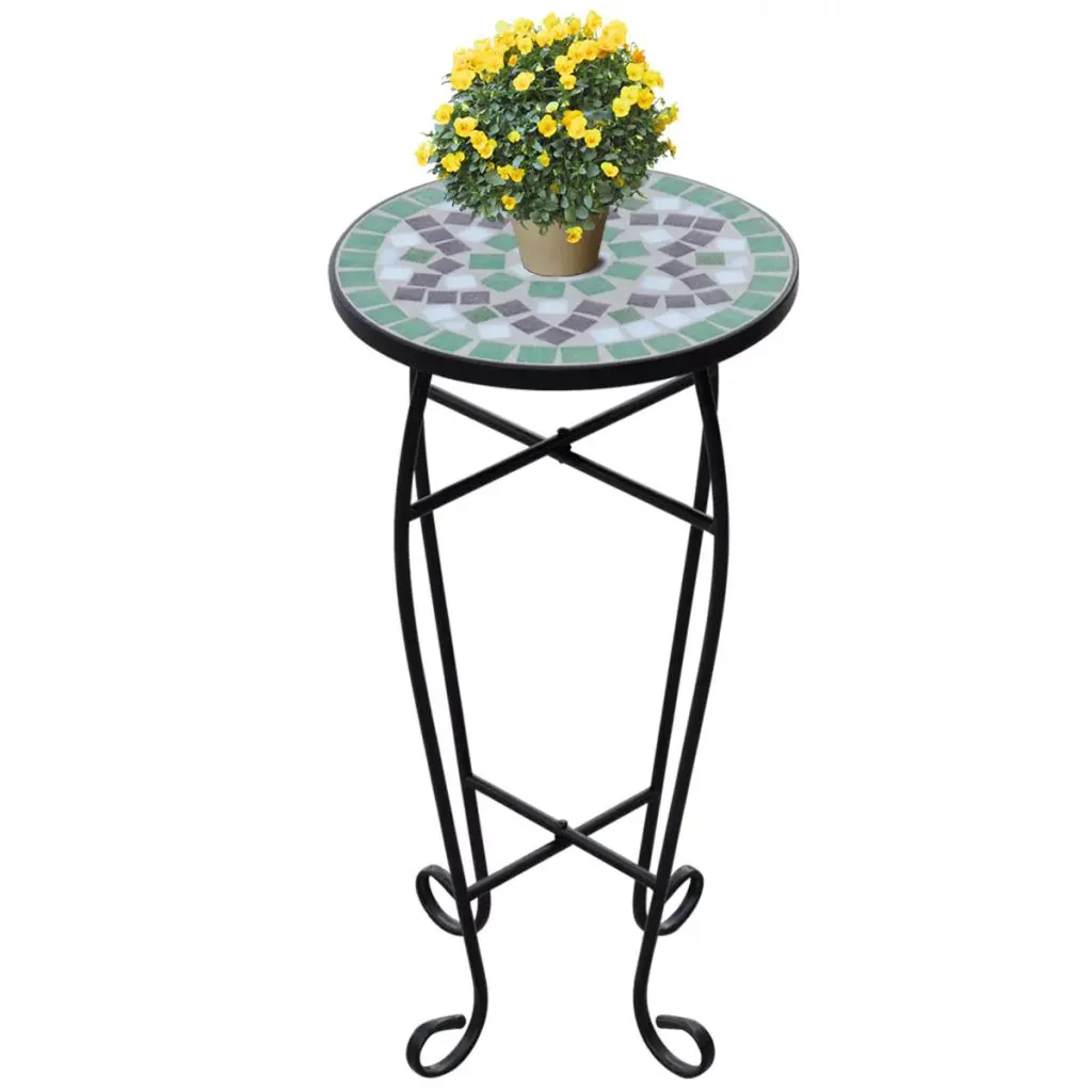 This plant table has a weatherproof mosaic table top and elegant curved legs. It will surely become an eye-catcher in your garden, balcony, terrace, etc. With a diameter of 30 cm, the table can also be used as a side table to rest your drink. Its iron frame contributes to the sturdiness, while the ceramic table top is weatherproof and easy to clean. It is very durable for a long-term service life.