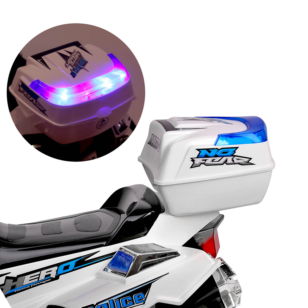The Police Ride On Bike is an absolute gem of a 3-wheel bike for your child. Finished in high gloss white, the Bike is simply stunning from any angle. Even more so when you look at what it has to offer for your eager kid.