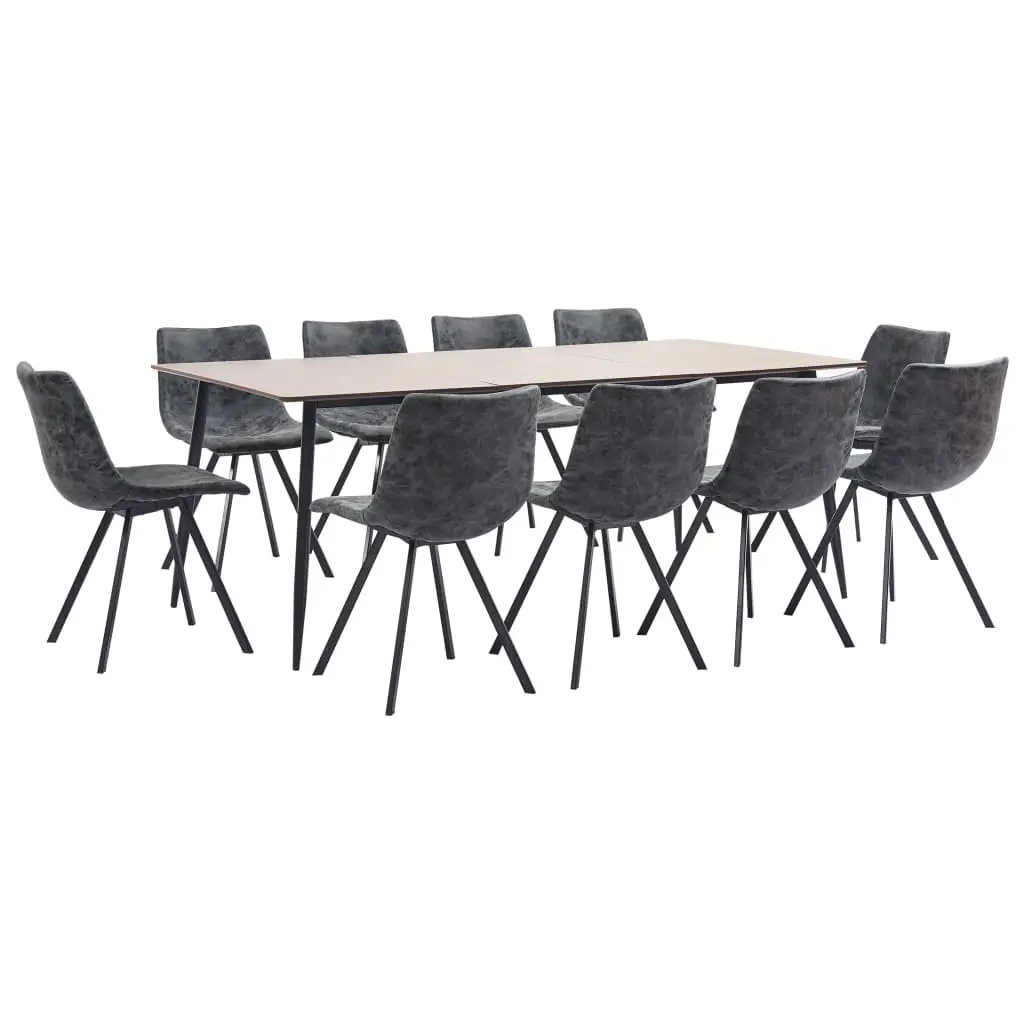 Featuring a modern and contemporary design, our dining set is perfect to go with any modern homes, dining areas, or commercial restaurants. Its clean and contemporary design will complement any interior decor. The tabletop is made of MDF which is easy to clean; Its wood grain pattern will add distinctive elegance to your meals. The powder-coated steel frame adds to the bar table’s stability and sturdiness. The chairs have an ergonomically designed seat with integrated backrest in a modern, curved look. Additionally, they are easy to assemble. Our dinner set is ideal for hosting a feast to your family and friends. Delivery includes a table and 10 chairs.