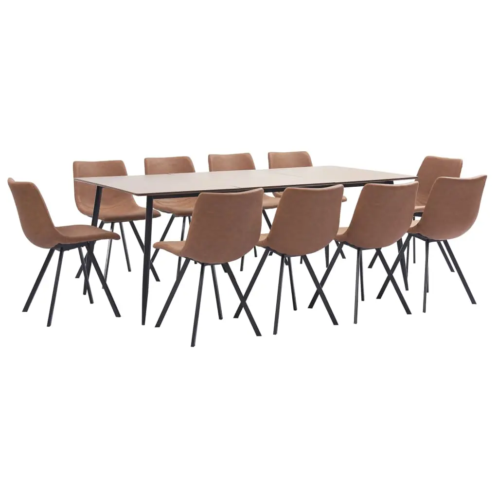 Featuring a modern and contemporary design, our dining set is perfect to go with any modern homes, dining areas, or commercial restaurants. Its clean and contemporary design will complement any interior decor. The tabletop is made of MDF which is easy to clean; Its wood grain pattern will add distinctive elegance to your meals. The powder-coated steel frame adds to the bar table’s stability and sturdiness. The chairs have an ergonomically designed seat with integrated backrest in a modern, curved look. Additionally, they are easy to assemble. Our dinner set is ideal for hosting a feast to your family and friends. Delivery includes a table and 10 chairs.