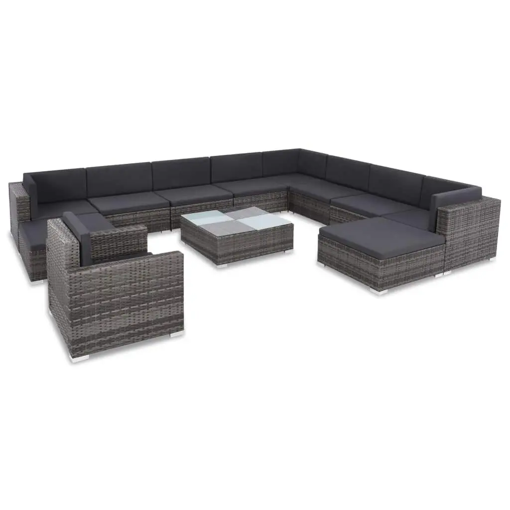 This poly rattan sofa set, consisting of 3 corner sofas, 5 centre sofas, 1 coffee table, 1 armchair, 2 footstools, 12 back pillows and 11 seat cushions, will offer a stylish seating area for your garden or patio. Thanks to the water-resistant PE rattan, the patio sofa set is easy to clean, hard wearing and suitable for daily outdoor use. The powder-coated steel frames make the set sturdy and stable. It is lightweight and the modular sections can be easily combined into different configurations. This set is also delivered with the highly comfortable, thickly-padded seat cushions and back pillows for the ultimate comfort. The low-maintenance polyester covers can also be removed and washed. This set is easy to assemble. Note: We recommend covering the set during rain, snow and frost for its best service to last.