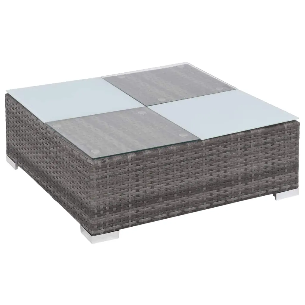 - Material: PE (polyethylene) rattan + glass tabletop + powder-coated steel frame