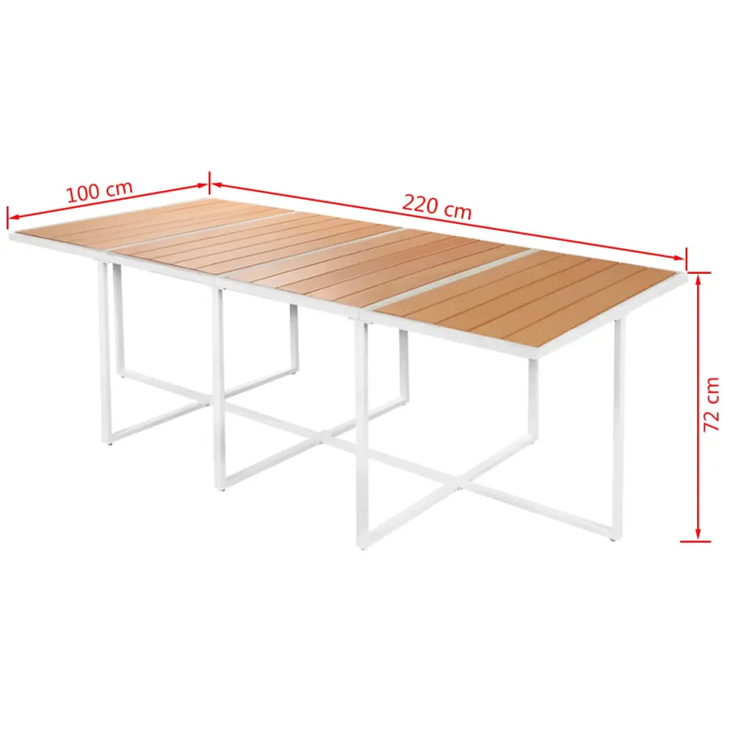 - Table material: WPC tabletop + powder-coated 100% aluminium frame