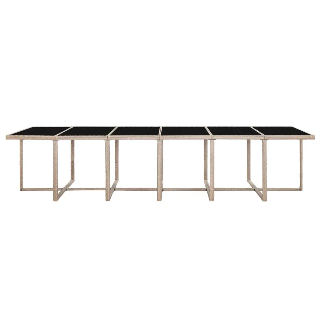 With a durable steel frame and stylish design, our rattan dining set is a perfect choice for your outdoor space. It will provide a comfortable place for your family to have dinner, read or rest. The steel frames contribute to the sturdiness, while the weather-resistant and waterproof PE rattan makes the set easy to clean. And since the construction is light in weight, all items are easy to move. The thick removable seat and back cushions, made of water-repellent polyester, will undoubtedly offer ultimate seating comfort. In addition, the stools can be well stored underneath the chairs, while at the same time, the stools and the chairs together could be stored underneath the table when not in use, saving more space! Delivery includes 1 table with glass top, 12 rattan chairs, 4 stools and 28 detachable cushions. Note: We recommend covering the set during rain, snow and frost for its best service to last.