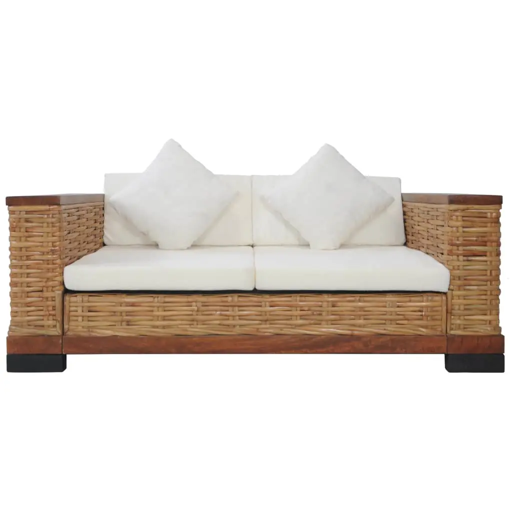 This rattan sofa set combines style and functionality, and will make a great addition to your home. Thanks to the genuine rattan material, the set is easy to clean, hardwearing and suitable for daily use. It features a sturdy wooden frame, which is highly durable and stable. The thick seat and back cushions are considerably conformable and also washable thanks to their removable covers. In addition, the wide armrests add to your seating comfort. Delivery includes a armchair, a 2-seater sofa, 3 seat cushions, 3 back cushions and 2 pillows.