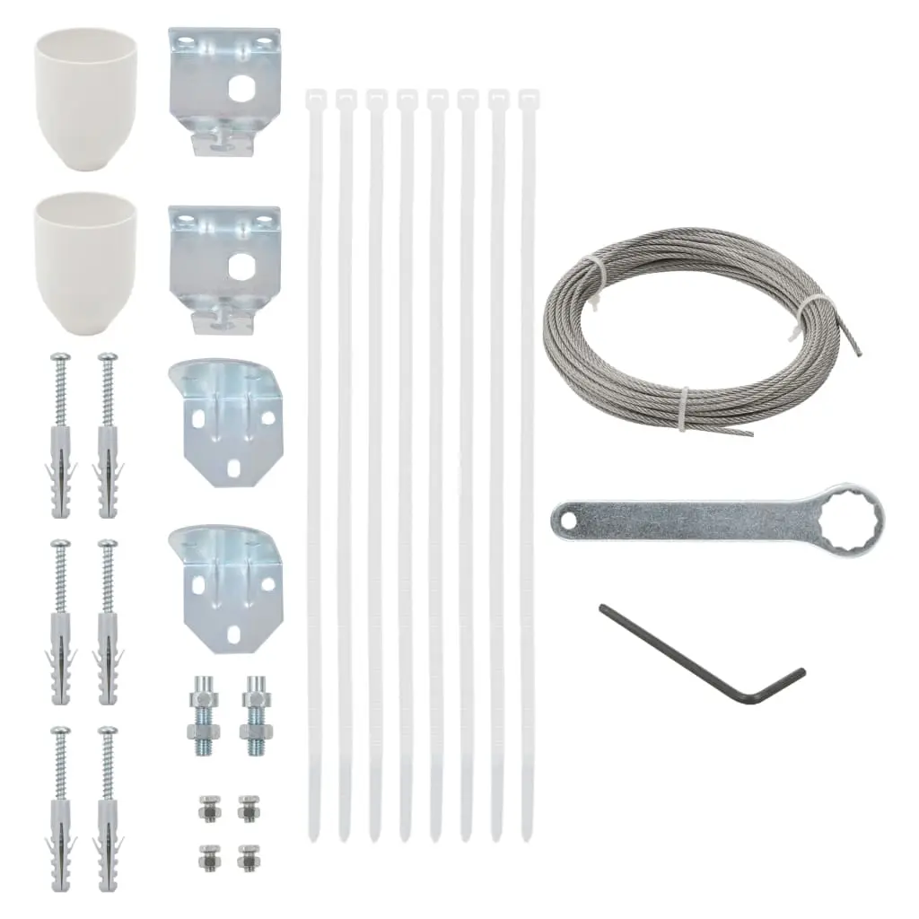This accessory set is suitable for side balcony screen. The delivery includes 1 steel cable, 2 corner bracket sets, 8 cable ties and other mounting accessories.