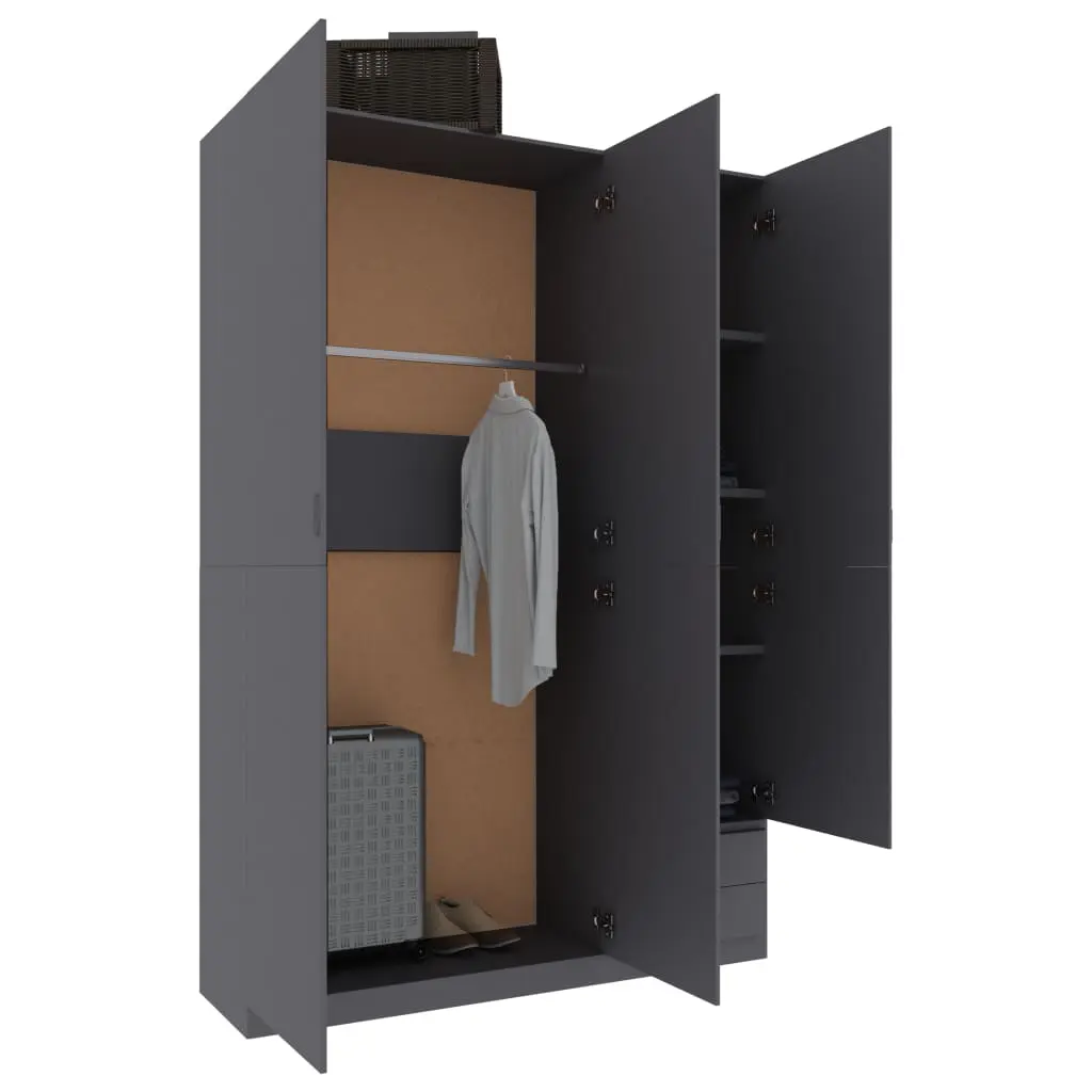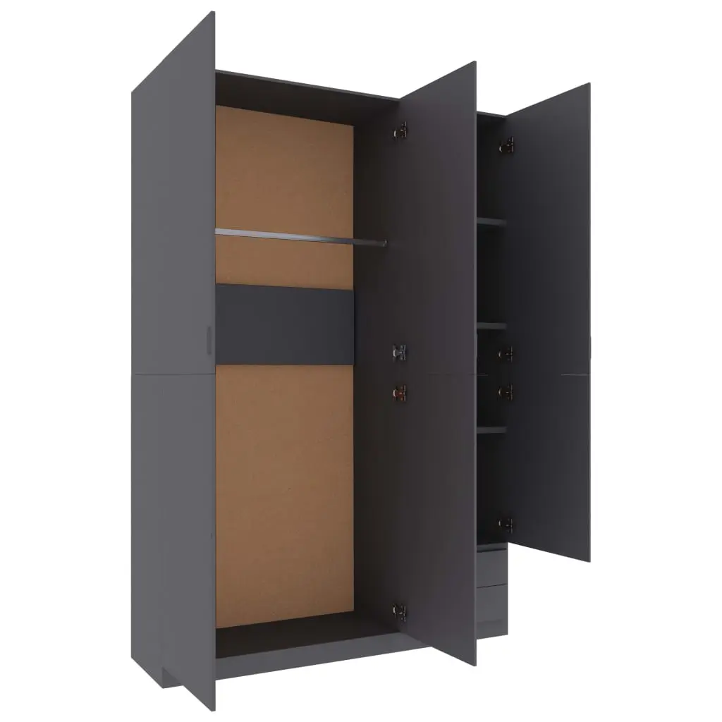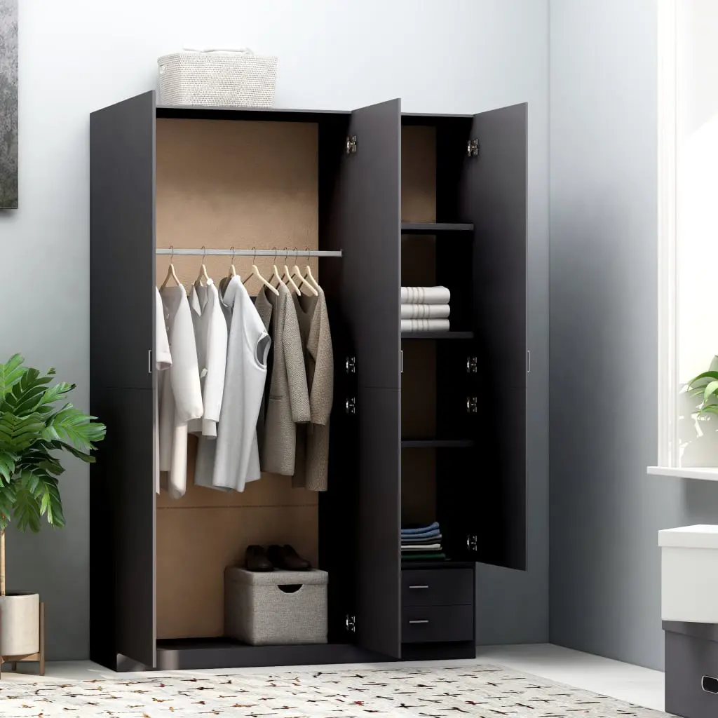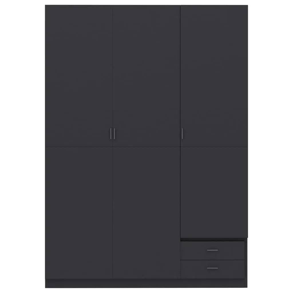 Organise and store your clothes in our spacious wardrobe with 3 doors. Our stylish and practical wardrobe presents a versatile storage solution for even the smallest bedrooms. This wardrobe is made of board, which ensures its sturdiness, durability and long service life. It includes 4 fixed shelves, 2 drawers@@ and 1 large compartment with hanging rod, offering you ample space both for your longer outfits and other folded clothes or accessories, such as sweaters, jeans, hats, hand bags, etc. All surface is easy to clean. This wardrobe is easy to assemble.