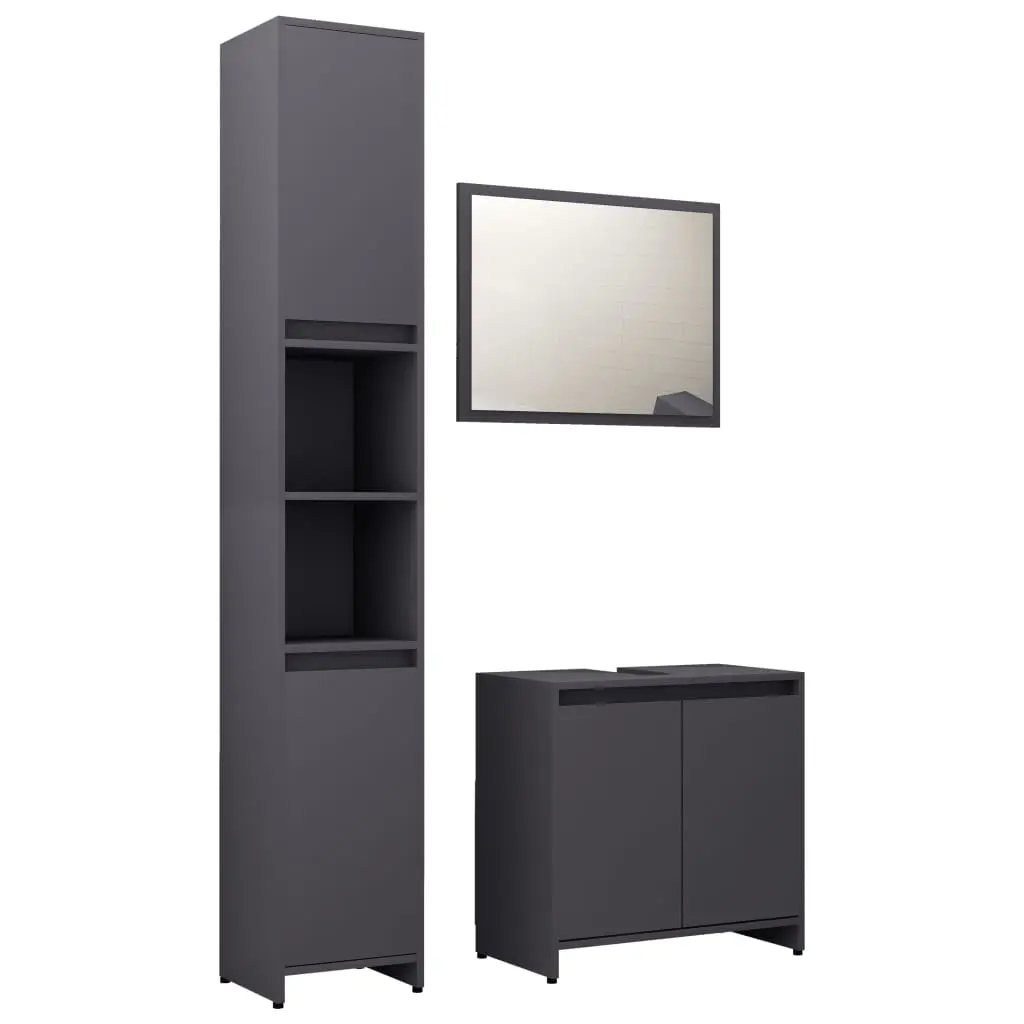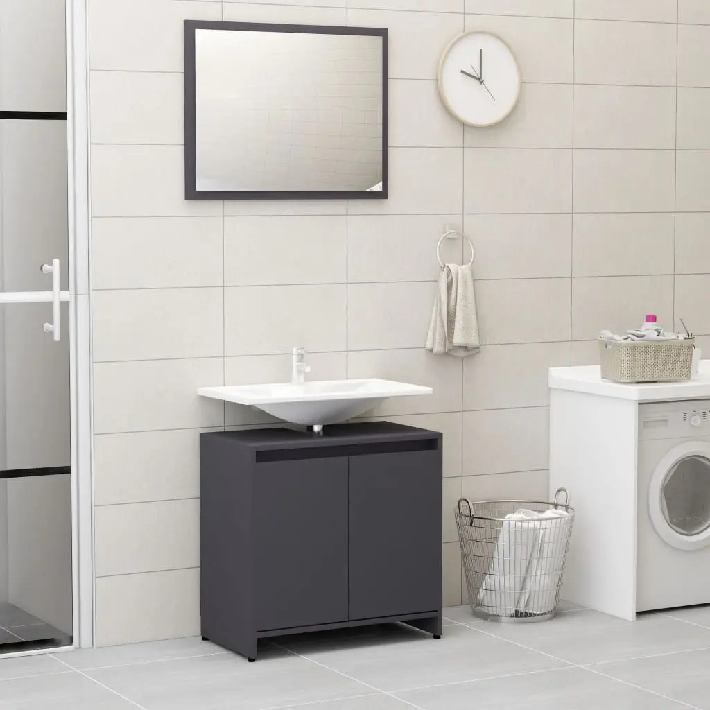This stylish bathroom furniture set, featuring 1 high cabinet, 1 under basin cabinet and 1 mirror, creates additional storage space for your bathroom with a stunning and neat appearance. Made of premium board, this set is durable and stable. The chic high cabinet has 6 compartments and 2 doors, offering spacious space to store items in your bathroom. The basin cabinet has 1 compartment and 2 doors, providing ample space to store your toiletries, beauty products and various kinds of smaller items. You can even organise combs, cosmetics, toothbrushes and toothpaste in the shelves conveniently within reach. The mirror adds an excellent appearance to your existing home decor. Additionally, this bathroom set is easy to clean with a damp cloth.