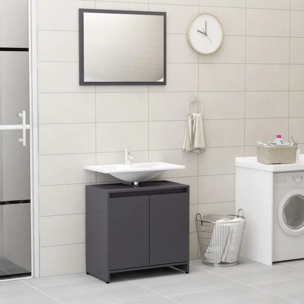 This stylish bathroom furniture set, featuring 1 medium cabinet, 1 under basin cabinet and 1 mirror, creates additional storage space for your bathroom with a stunning and neat appearance. Made of premium board, this set is durable and stable. The chic medium cabinet has 2 compartments, 1 drawer and 1 door, offering spacious space to store items in your bathroom. The basin cabinet has 1 compartment and 2 doors, providing ample space to store your toiletries, beauty products and various kinds of smaller items. You can even organise combs, cosmetics, toothbrushes and toothpaste in the shelves conveniently within reach. The mirror adds an excellent appearance to your existing home decor. Additionally, this bathroom set is easy to clean with a damp cloth.