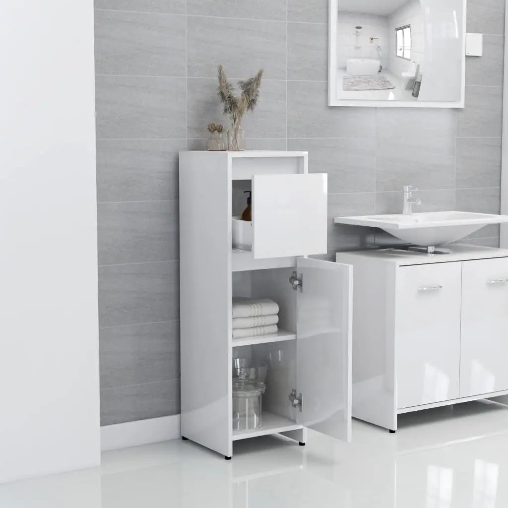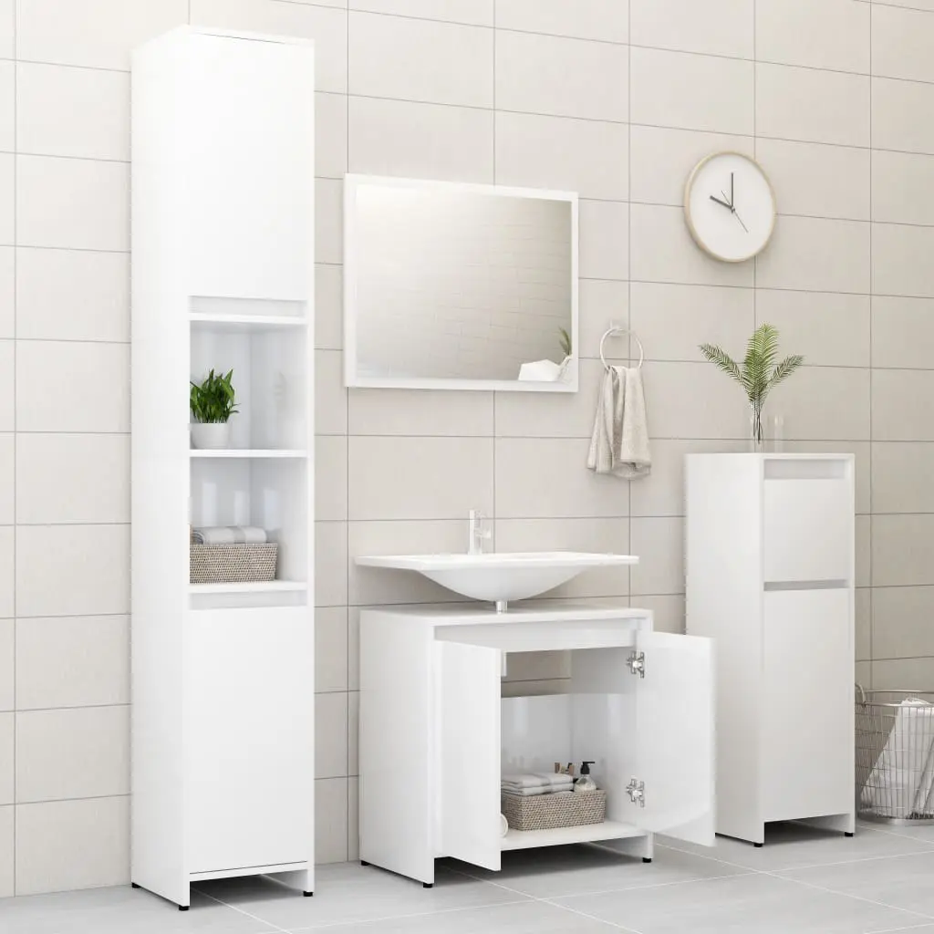 This stylish bathroom furniture set, featuring 1 medium cabinet, 1 under basin cabinet and 1 mirror, creates additional storage space for your bathroom with a stunning and neat appearance. Made of premium board, this set is durable and stable. The chic medium cabinet has 2 compartments, 1 drawer and 1 door, offering spacious space to store items in your bathroom. The basin cabinet has 1 compartment and 2 doors, providing ample space to store your toiletries, beauty products and various kinds of smaller items. You can even organise combs, cosmetics, toothbrushes and toothpaste in the shelves conveniently within reach. The mirror adds an excellent appearance to your existing home decor. Additionally, this bathroom set is easy to clean with a damp cloth.