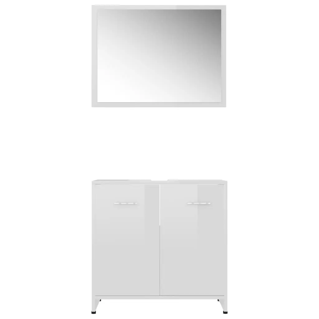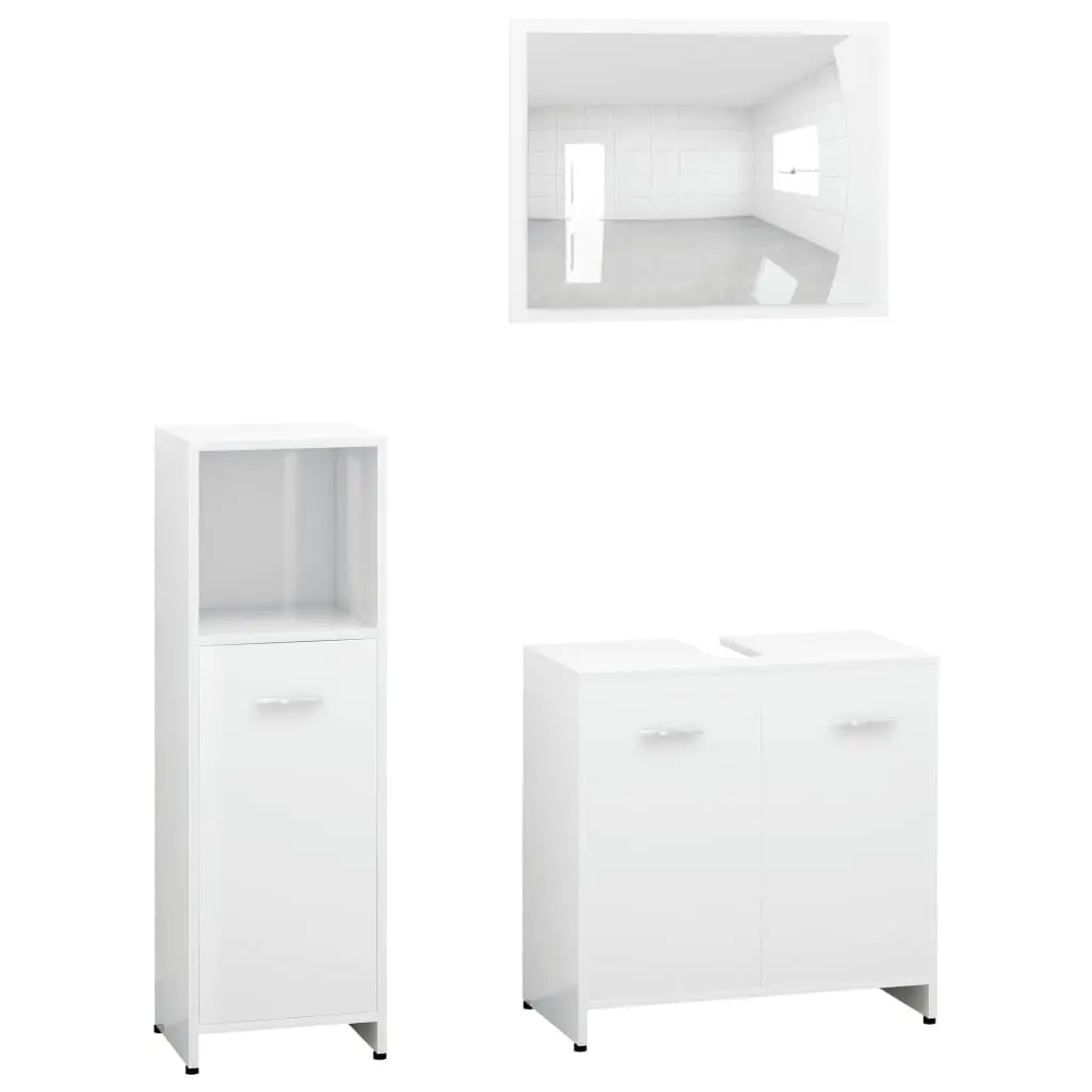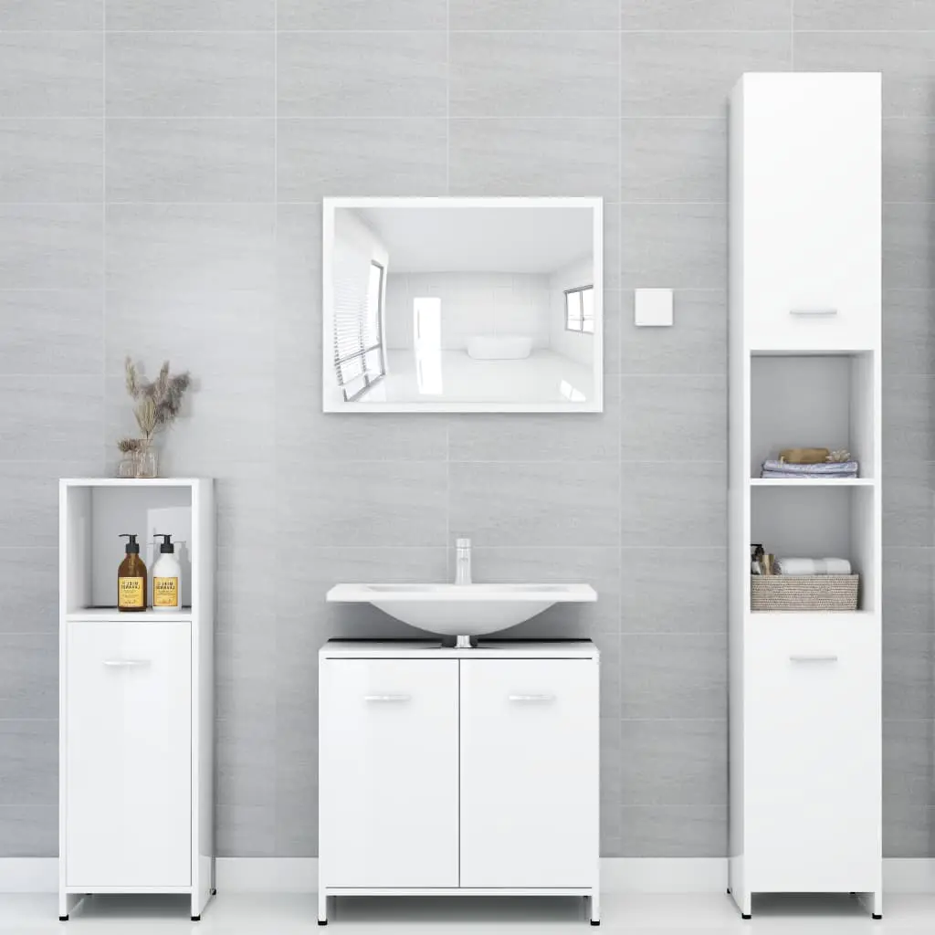 This stylish bathroom furniture set, featuring 1 medium cabinet, 1 under basin cabinet and 1 mirror, creates additional storage space for your bathroom with a stunning and neat appearance. Made of premium board, this set is durable and stable. The chic medium cabinet has 3 compartments and 1 door, offering spacious space to store items in your bathroom. The basin cabinet has 1 compartment and 2 doors, providing ample space to store your toiletries, beauty products and various kinds of smaller items. You can even organise combs, cosmetics, toothbrushes and toothpaste in the shelves conveniently within reach. The mirror adds an excellent appearance to your existing home decor. Additionally, this bathroom set is easy to clean with a damp cloth.