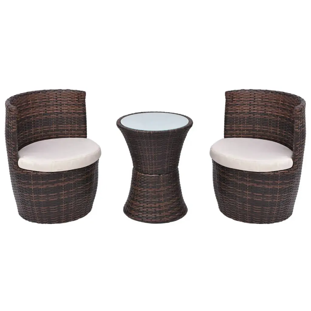 This stylish, functional rattan table and chair set will be a perfect retreat when you want to relax and embrace the sunshine in the garden, or on the balcony or patio. The patio furniture set is constructed from sturdy steel and high-quality PE rattan, which makes it durable and easy to maintain. Thanks to the curved backrests and thick, removable cushions, the chairs are very comfortable to sit on. The table has a frosted glass top which is sturdy and easy to clean. Since the rattan set is light in weight, all items are easy to move. Four adjustable feet can be added to each item if needed. Thanks to the clever design, the table and chairs can be stacked to form a compact unit for easy and clutter-free storage. Delivery includes 1 table, 2 chairs and 2 seat cushions. Note: We recommend covering the furniture set in the rain, snow or frost.