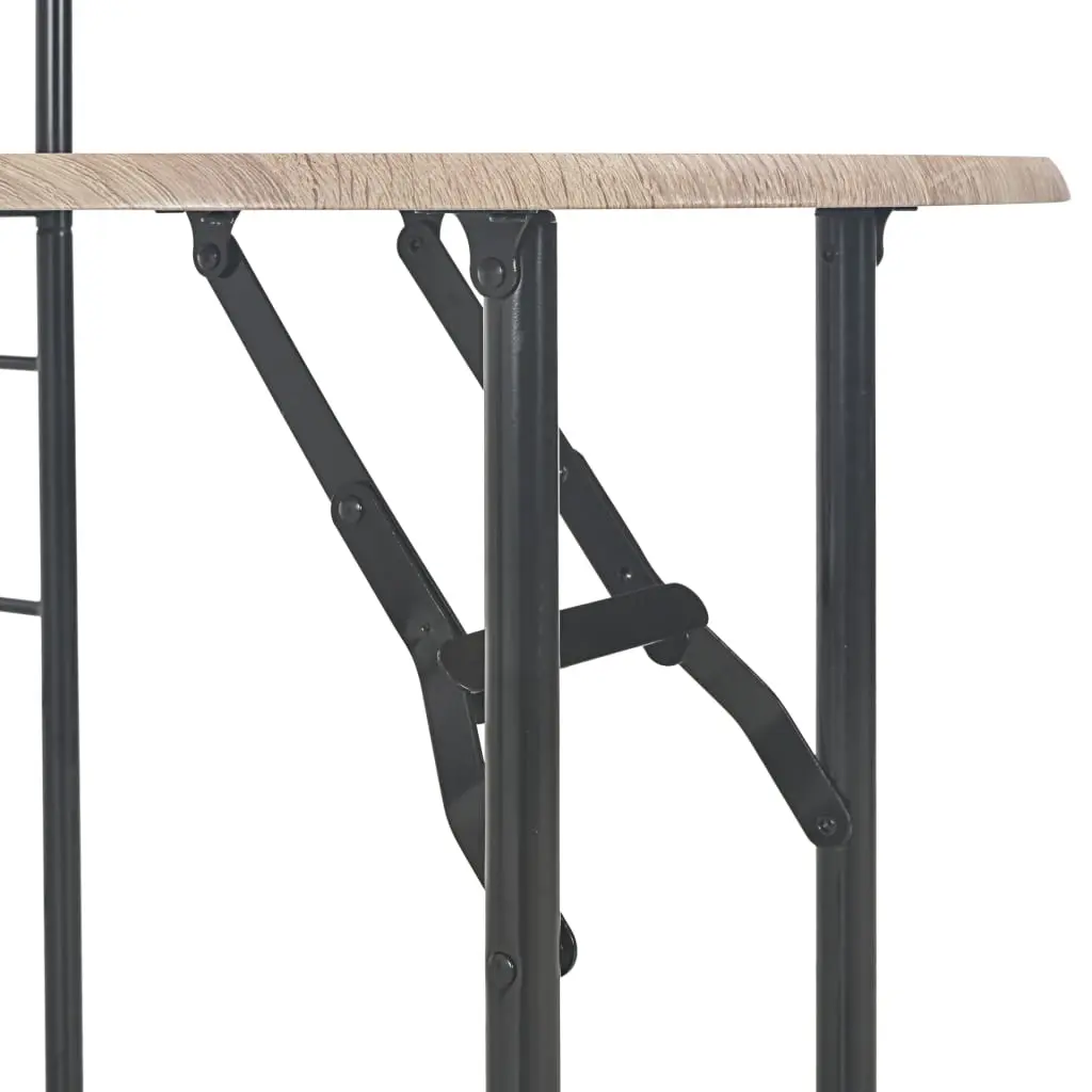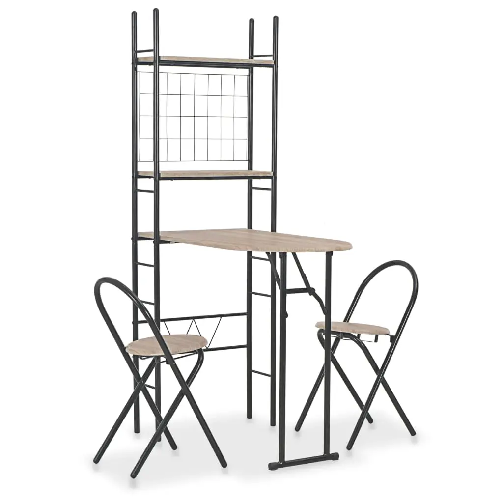 Made of durable MDF and steel, this 3-piece dining set stands out with its versatility and will make a distinctive addition to homes, gardens, bars, pubs, or restaurants. Made of durable MDF, the surfaces are easy to clean. The steel frames provide great stability. The chairs can be folded up when not in use, so as to save space. Additionally, there is an integrated 2-layer storage rack fixed to the table, so that you can get your things well-organized and within reach. The tabletop can also folded, making it even more suitable for limited spaces. The dining set is easy to assemble. Delivery includes 1 table and 2 chairs.
