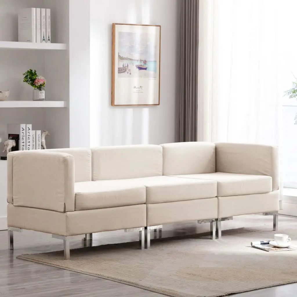 This stylish sofa set, which consists of 3 pieces, will make a great addition to your living space. Whether you need comfortable couches to put in your office, or just want a nice, stylish addition to your home decor, this fabric sofa set will be a great choice! The sofas feature comfortable seating area and thickly padded cushions for the ultimate seating comfort. They are upholstered in soft fabric that is hardwearing. The cushion covers are easy to keep clean as they are removable. Additionally, the strong plastic chrome frame contributes to the sturdy construction. Our sofa set is easy to assemble.