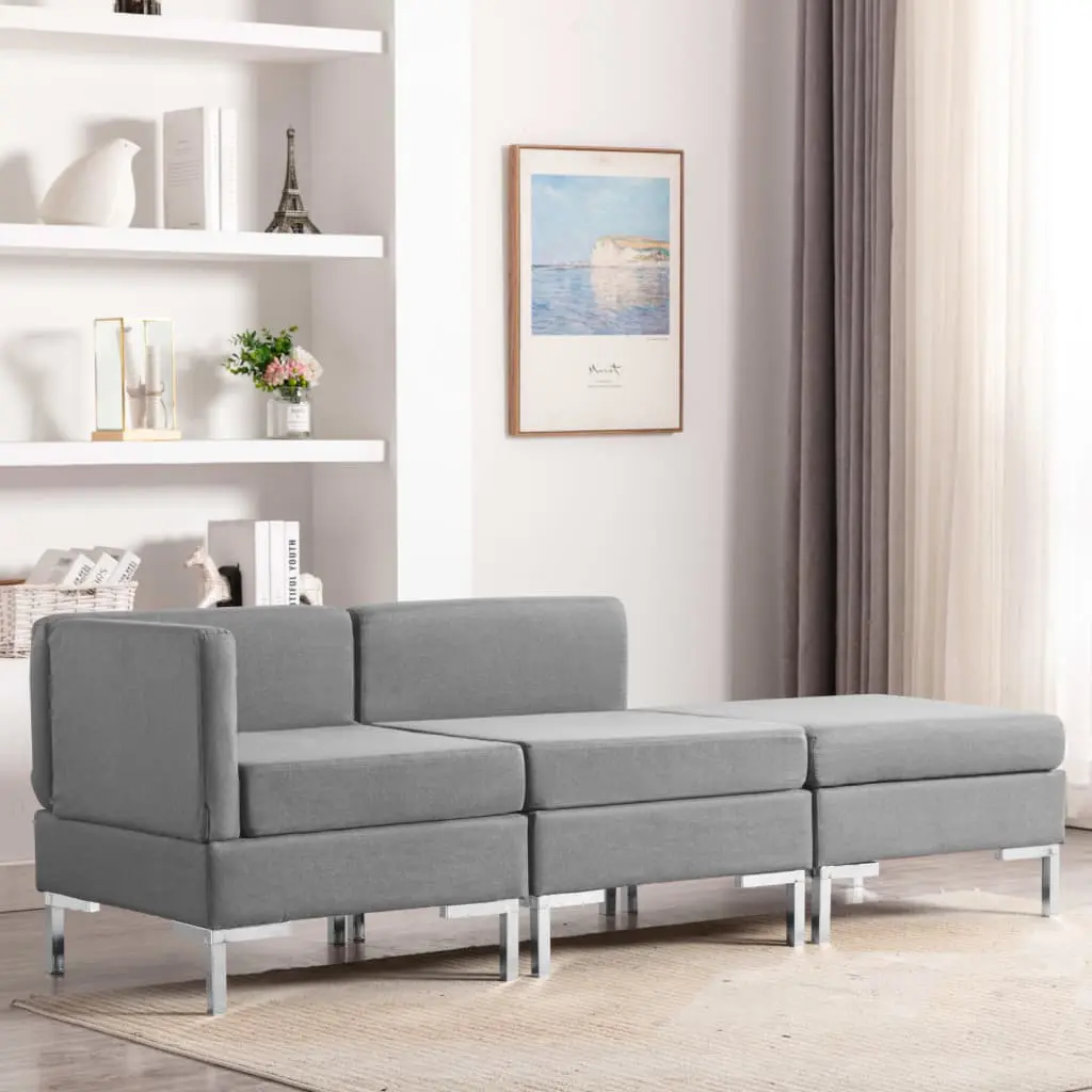 This stylish sofa set which consists of 3 pieces will make a great addition to your living space. Whether you need comfortable couches to put in your office, or just want a nice, stylish addition to your home decor, this sofa set will be a great choice! The sofa set is upholstered in soft fabric that is hardwearing and provides ultimate seating comfort. The MDF frame contributes to its sturdy construction. Additionally, this set is easy to assemble. Delivery includes 1 corner sofa, 1 middle sofa, 1 footrest and 3 seat cushions.
