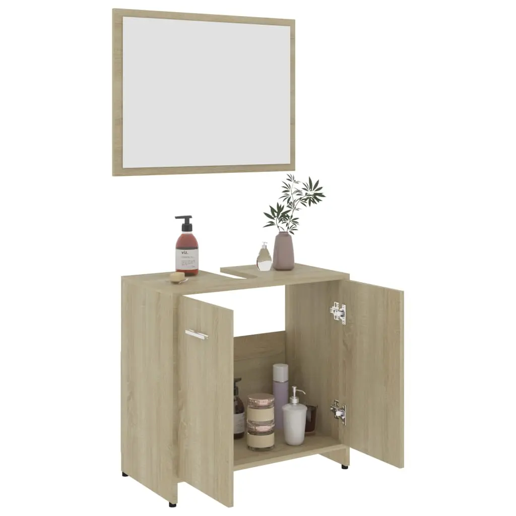 This stylish bathroom furniture set, featuring 1 high cabinet, 1 medium cabinet, 1 under basin cabinet and 1 mirror, creates additional storage space for your bathroom with a stunning and neat appearance. Made of premium board, this set is durable and stable. The chic high cabinet has 6 compartments and 2 doors while the medium cabinet has 3 compartments and 1 door. Both offer spacious space to store your essential items in your bathroom. The basin cabinet, featuring 1 compartment and 2 doors, provides ample space to store your toiletries, beauty products and smaller items. You can even place combs, cosmetics, toothbrushes, toothpaste, etc., neatly organised and within reach. The mirror adds a unique appearance to your existing home decor. Additionally, this bathroom set is easy to clean with a damp cloth.