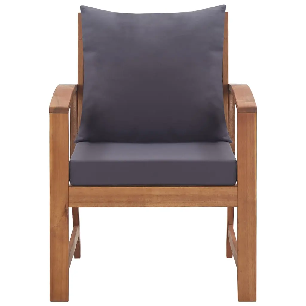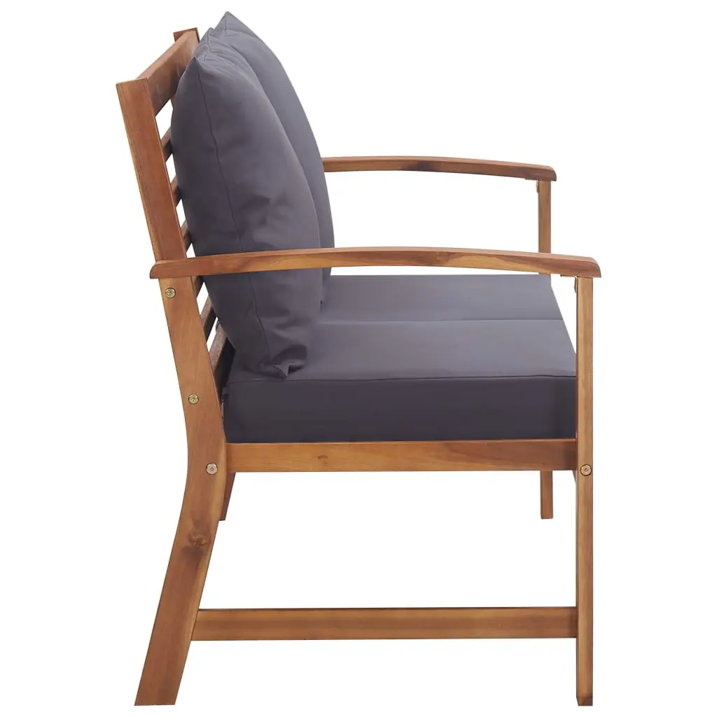 Our garden sofa set will be a perfect choice for coffee time or for lounging around. The lounge set exudes a rustic charm and will make an attractive addition to your garden, terrace, or patio. This garden furniture set is made of high-quality solid acacia wood, a tropical hardwood, which is weather-resistant and highly durable. Thanks to the oil finish, the patio furniture set has a warm colour and is easy to maintain. The included cushions will provide added comfort. Delivery includes 1 table, 1 bench and 2 chairs. The garden furniture set needs assembly.
