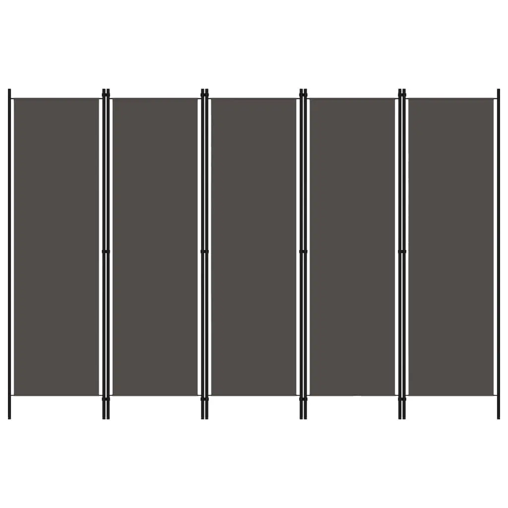 Our freestanding and practical 5-panel room divider can be used as a partition, privacy screen or for decoration. It can provide ideal privacy in the bedroom or a compartment of the room. Made of powder-coated iron frame and fabric screens, this room divider can be easily folded up when not in use. Note: The fabric does not block all lighting completely.