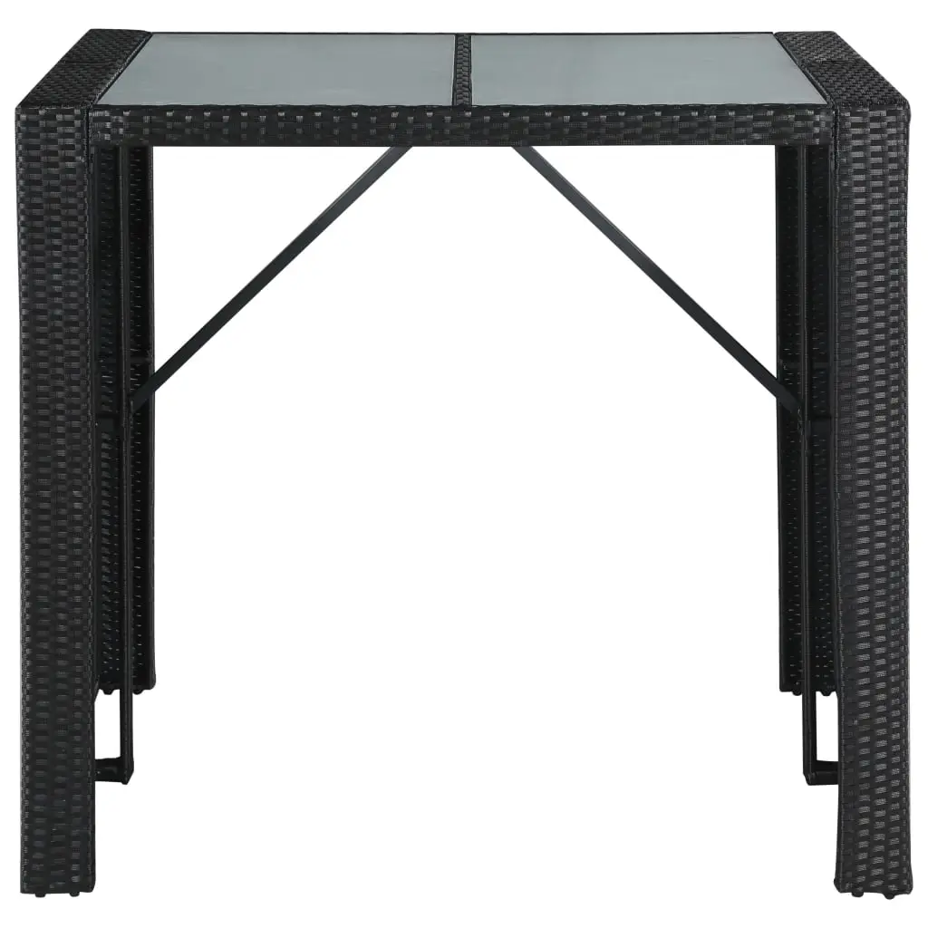 - Material: PE (polyethylene) rattan + glass tabletop + powder-coated steel frame