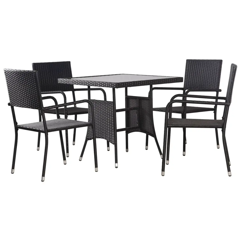 The rattan garden dining set has an elegant design which will make it the focal point of your garden, patio or terrace. The outdoor dining set is made of weather-resistant and maintenance-free PE rattan, which makes it easy to clean, hardwearing as well as suitable for daily use. Meanwhile, the steel frame also makes the table and chairs very sturdy and durable. Thanks to the lightweight construction, all items are easy to move. The outdoor chairs are lightweight and can be stacked to save space when not in use. Delivery includes 1 table with glass top and 4 stacking chairs. Important note: We recommend covering the set during rain, snow and frost.