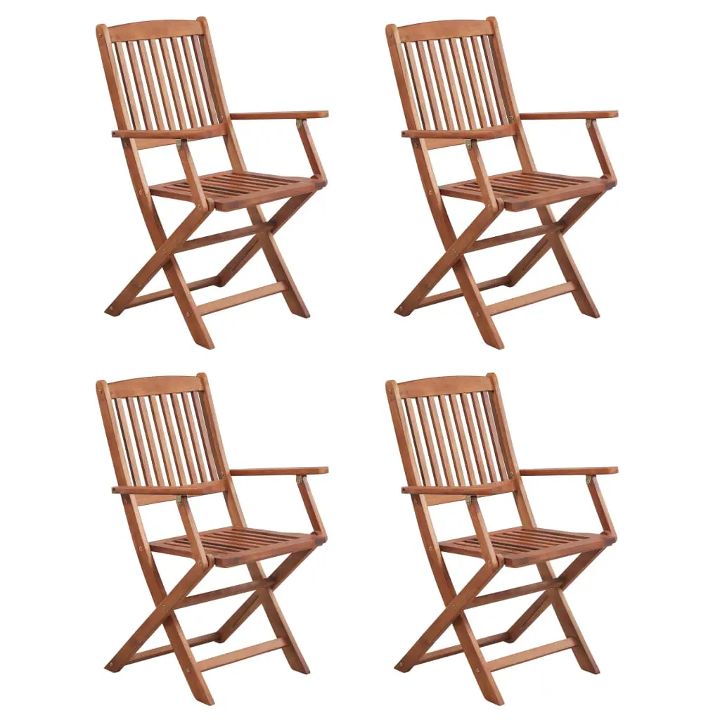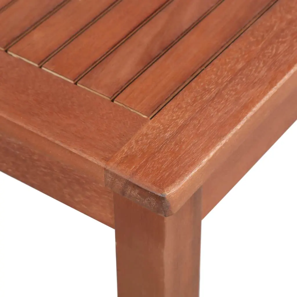 This wooden dining set exudes a rustic charm and will become the focal point of your outdoor living space. The table and chairs are made of high-quality solid acacia wood, a tropical hardwood, which is weather-resistant and highly durable. The oil finished surface also makes the set easy to clean with a damp cloth. The armrests add to the chairs’ seating comfort. Delivery includes 1 table and 4 chairs. The set is easy to assemble.