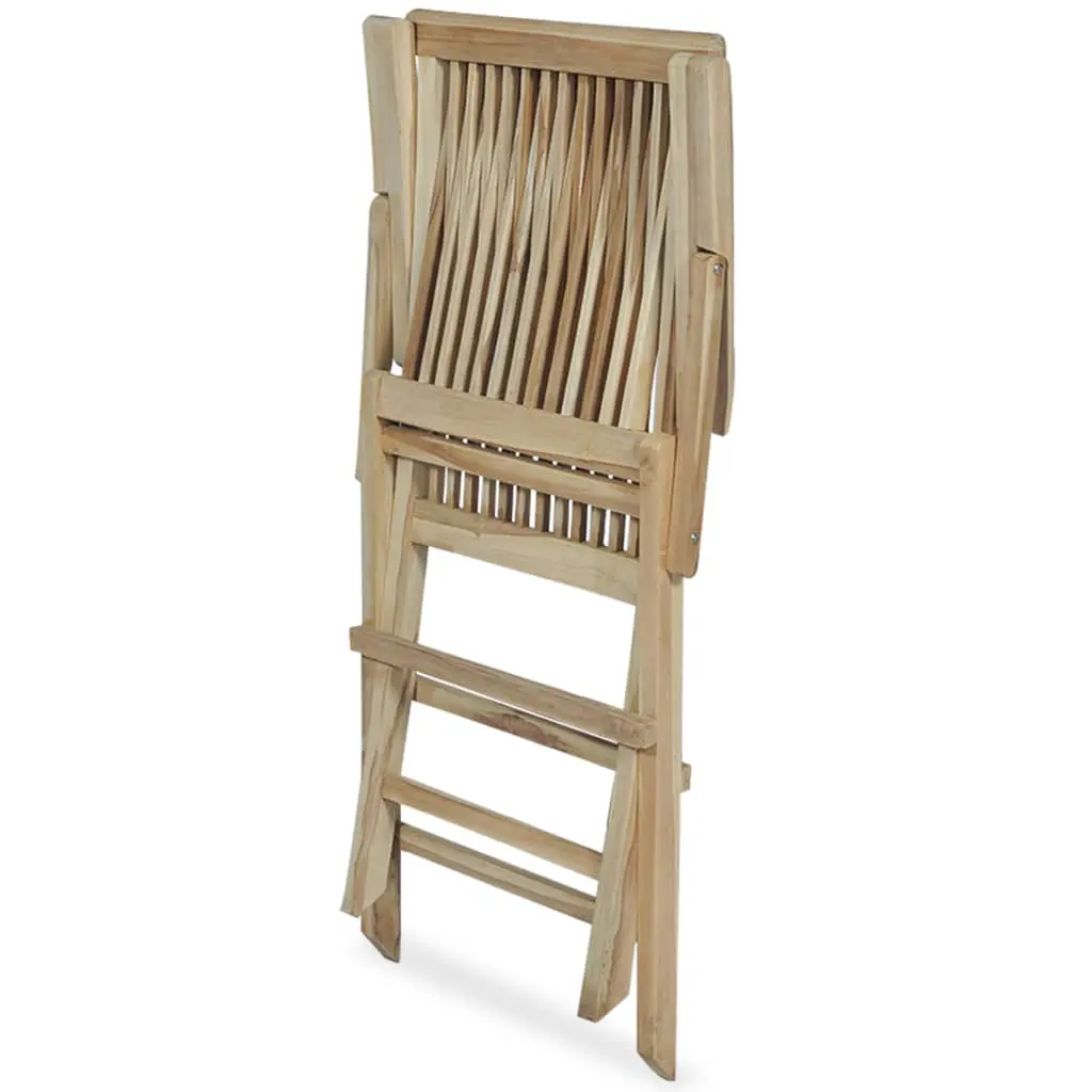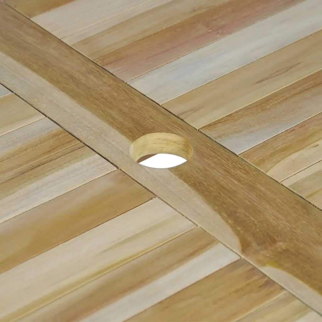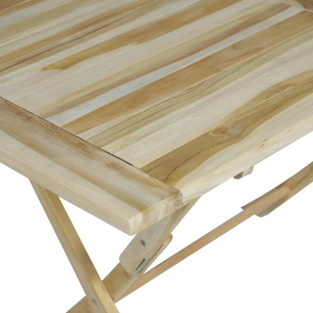 This solid teak dinning set is perfect for outdoor camping or picnic. This set will come in handy when extra seating space is required. Both table and chairs are made of high-quality solid teak. Therefore, they are weather resistant and durable. Furthermore, they can also resist moisture and insects. Due to the sturdy structure, this set is very safe. Meanwhile, it will provides you with comfort and great convenience to spend time with your family and friends. The polished surface is easy to clean with a damp cloth. In addition, the set can be easily folded away when not in use. This table has a hole so that an umbrella can be installed. Delivery includes 1 rectangular table and 4 folding chairs.