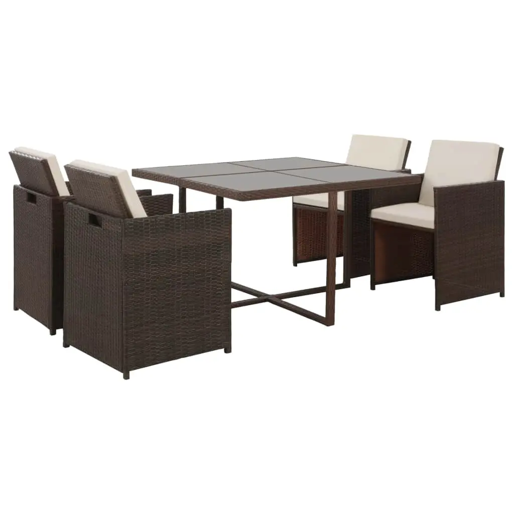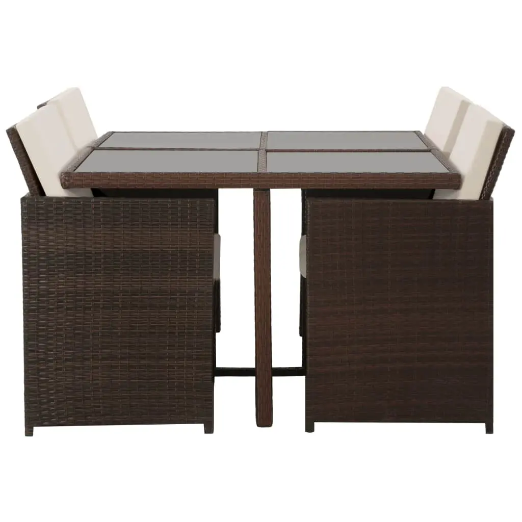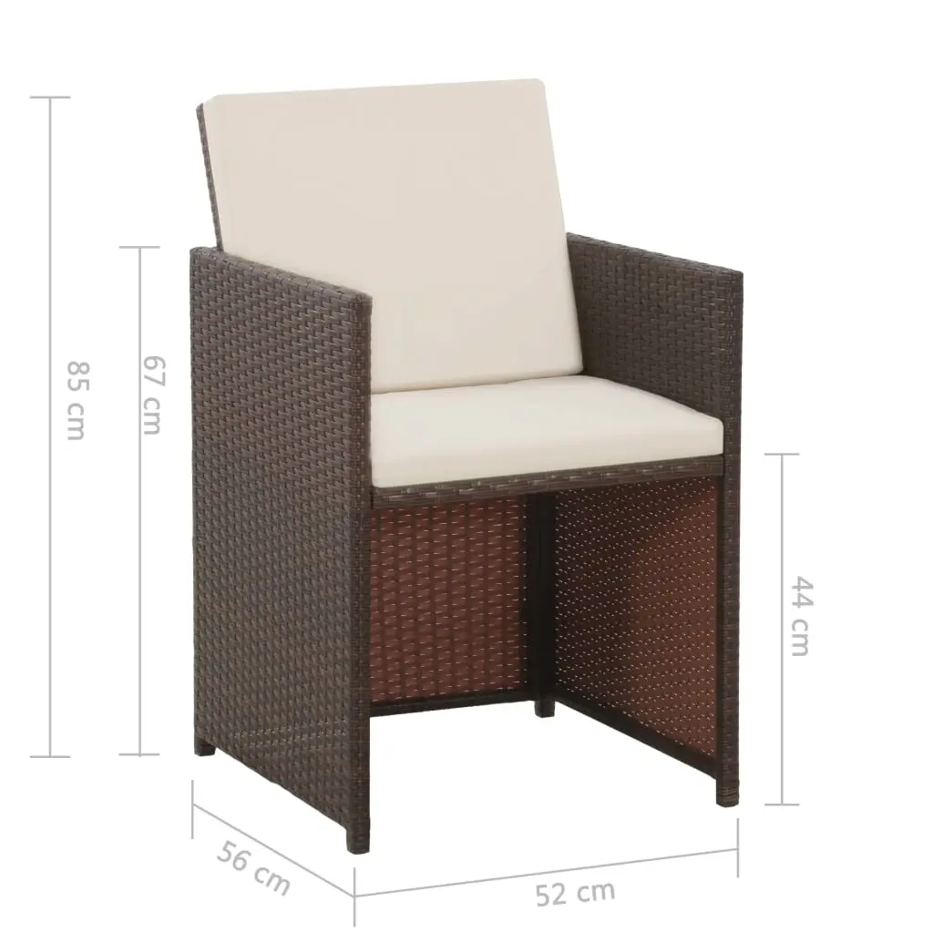 Our poly rattan garden dining set, with an elegant design, will be a great choice for al fresco dining or relaxing in the garden or on the patio! The garden furniture set features a sturdy powder-coated steel frame, making it very stable and durable. Thanks to the water-resistant PE rattan, the dining set is easy to clean, hardwearing and suitable for daily outdoor use. The glass tabletop is also easy to clean with a damp cloth. The thick, soft, foam-filled seat and back cushions are highly comfortable. The low-maintenance polyester cushion covers can be easily removed and washed. The whole garden dining set is easy to assemble. Delivery includes 1 table, 4 chairs and 8 cushions. Note: We recommend covering the set in the rain, snow and frost.