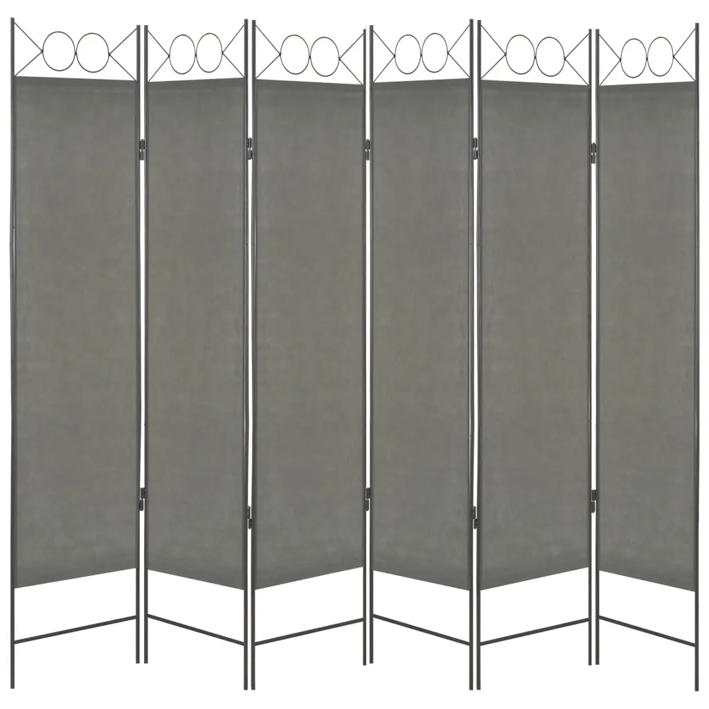 This freestanding and practical 6-panel room divider can be used for decoration or as a partition. You can simply place it in the bedroom to create a separate, private dressing area, or to section off part of a room. Top with circle design adds extra elegance. Additionally, made of powder-coated steel frame and textile screens, the room divider can be easily folded up when not in use. Note: The fabric is not completely blocking all light.