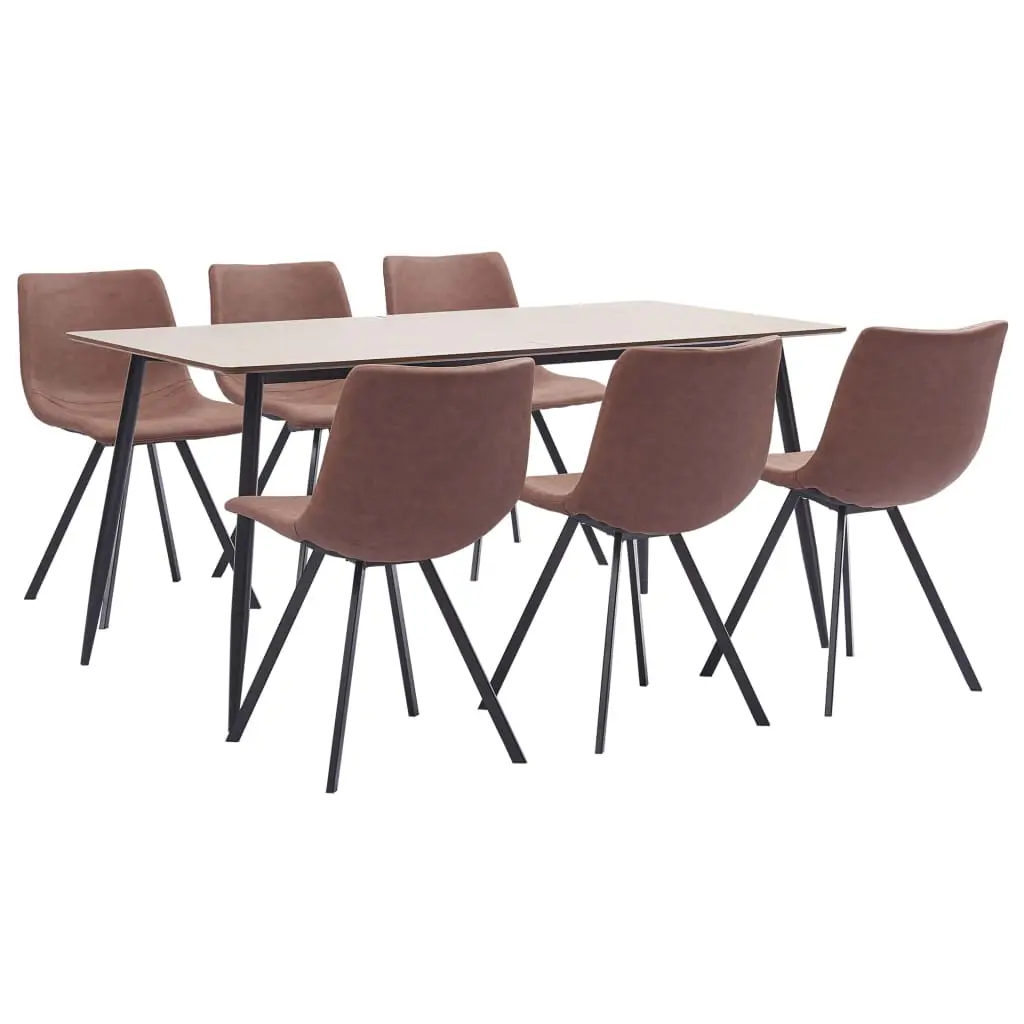 Featuring a modern and contemporary design, our dining set is perfect to go with any modern homes, dining areas, or commercial restaurants. Its clean and contemporary design will complement any interior decor. The tabletop is made of MDF which is easy to clean; Its wood grain pattern will add distinctive elegance to your meals. The powder-coated steel frame adds to the bar table’s stability and sturdiness. The chairs have an ergonomically designed seat with integrated backrest in a modern, curved look. Additionally, they are easy to assemble. Our dinner set is ideal for hosting a feast to your family and friends. Delivery includes a table and 6 chairs.