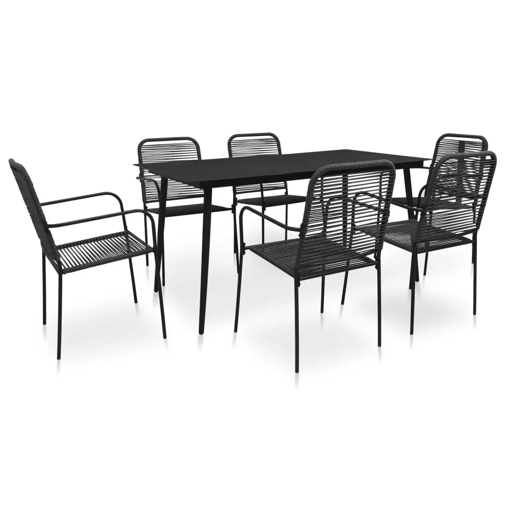 Our 7-piece dining furniture set with elegant design and clean lines will be an excellent choice for your garden, patio, terrace, as well as kitchen and dining rooms. The simplistic elegance of this dining set will make your everyday dinners special. The backrest and seat is made of twined cotton rope, which is soft to touch and sturdy for long term use. This garden dining set features a powder-coated steel frame, which makes the table and chairs stable and durable. Additionally, the table features a tempered glass tabletop, which is easy to clean. Our dining set is easy to assemble.