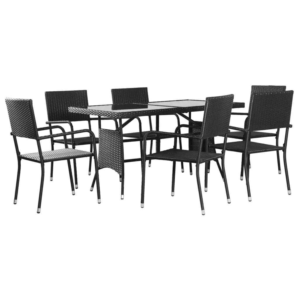 The rattan garden dining set has an elegant design which will make it the focal point of your garden, patio or terrace. The outdoor dining set is made of weather-resistant and maintenance-free PE rattan, which makes it easy to clean, hardwearing as well as suitable for daily use. Meanwhile, the steel frame also makes the table and chairs very sturdy and durable. Thanks to the lightweight construction, all items are easy to move. The outdoor chairs are lightweight and can be stacked to save space when not in use. Delivery includes 1 table with glass top and 6 stacking chairs. Important note: We recommend covering the set during rain, snow and frost.