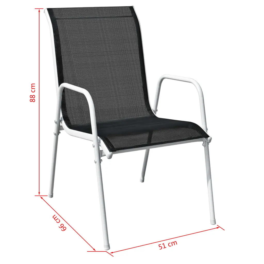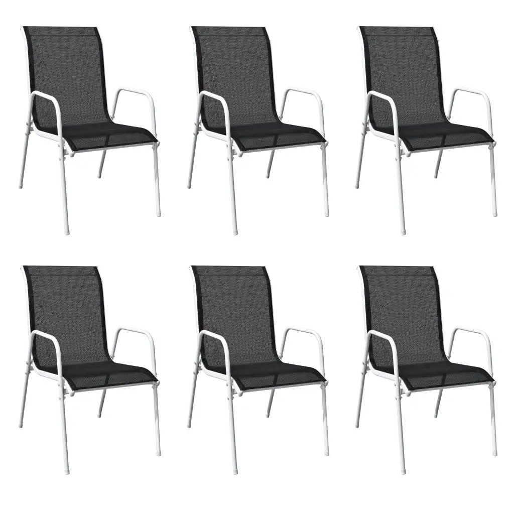 This outdoor dining set contains 1 table with glass top, and 6 textilene chairs. With a stylish design and a durable steel frame, our dining furniture set is a perfect choice for your outdoor living space. The simple elegance of this dining set will make everyday dinners special. This garden dining set features a powder-coated steel frame, which makes the table and chairs stable and durable. The comfortable dining chairs are upholstered in strong and easy-to-clean textilene fabric. The chairs are also stackable to save space when not in use. Delivery includes 1 table with a glass top and 6 high-quality textilene chairs.