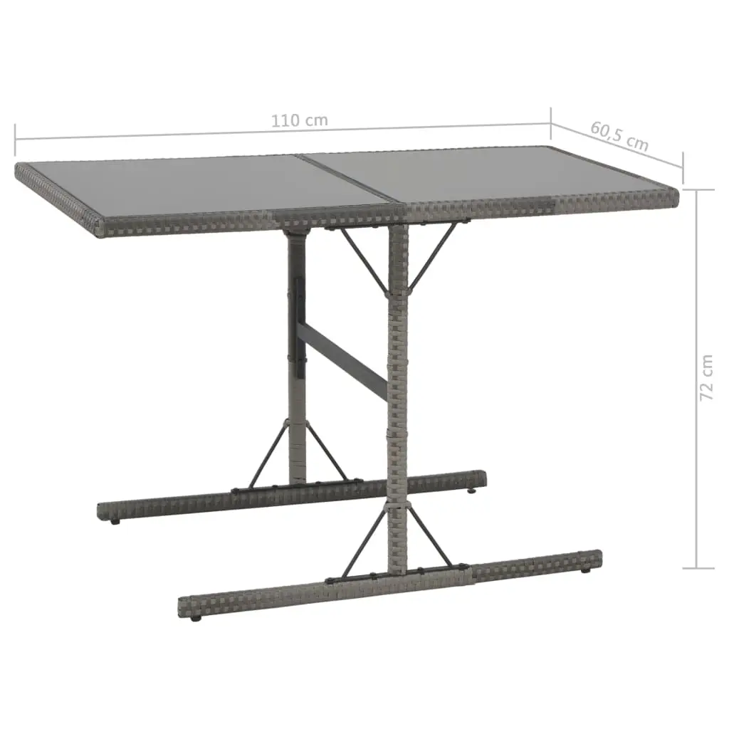 - Material: PE (polyethylene) rattan + powder-coated steel + glass