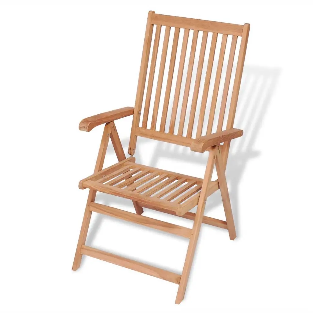This stylish dining set consists of 1 table and 6 folding armchairs and has a classic design. This wooden garden furniture set will become the focal point of your garden or patio! Constructed from extremely durable teak hard wood, this piece of teak furniture has been seasoned, kiln dried and then fine sanded to give a very smooth appearance. Teak wood is known for its exceptional strength and weather resistance, making it far more suitable for garden furniture than any other kind of wood. Teak wood is the perfect choice if you want to purchase a long lasting piece of garden furniture. The tabletop has a parasol hole, so you can enjoy the summer breeze without worrying about the burning sun. The chairs can be adjusted in 7 reclining settings, so you can always find the most comfortable position. The chairs can be easily folded when not in use, so they won’t take up too much storage space. Delivery includes 1 garden dining table and 6 reclining garden chairs.