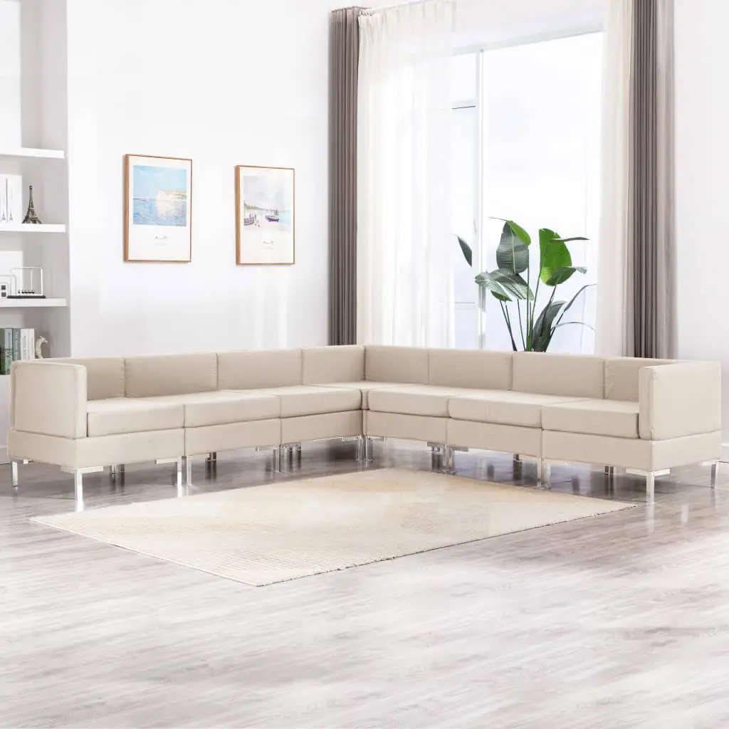 This stylish sofa set, which consists of 7 pieces, will make a great addition to your living space. Whether you need comfortable couches to put in your office, or just want a nice, stylish addition to your home decor, this fabric sofa set will be a great choice! The sofas feature comfortable seating area and thickly padded cushions for the ultimate seating comfort. They are upholstered in soft fabric that is hardwearing. The cushion covers are easy to keep clean as they are removable. Additionally, the strong plastic chrome frame contributes to the sturdy construction. Our sofa set is easy to assemble.