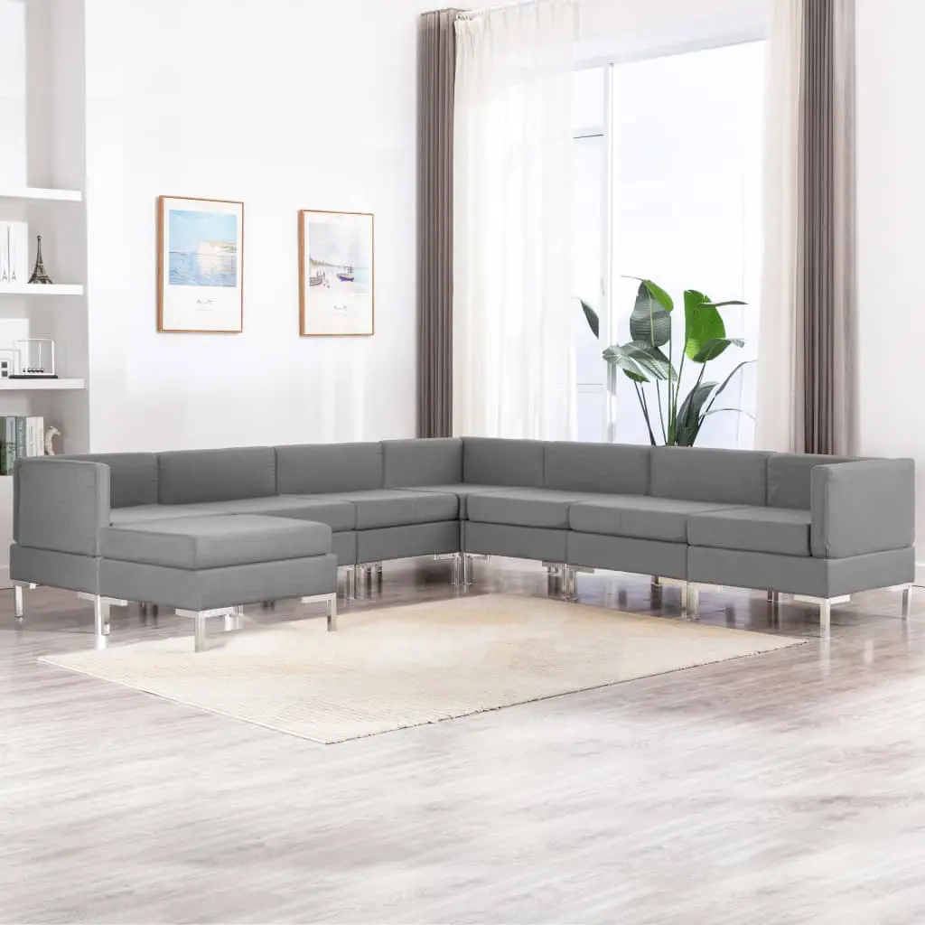 This stylish sofa set, which consists of 8 pieces, will make a great addition to your living space. Whether you need comfortable couches to put in your office, or just want a nice, stylish addition to your home decor, this fabric sofa set will be a great choice! The sofas feature comfortable seating area and thickly padded cushions for the ultimate seating comfort. They are upholstered in soft fabric that is hardwearing. The cushion covers are easy to keep clean as they are removable. Additionally, the strong plastic chrome frame contributes to the sturdy construction. Our sofa set is easy to assemble.