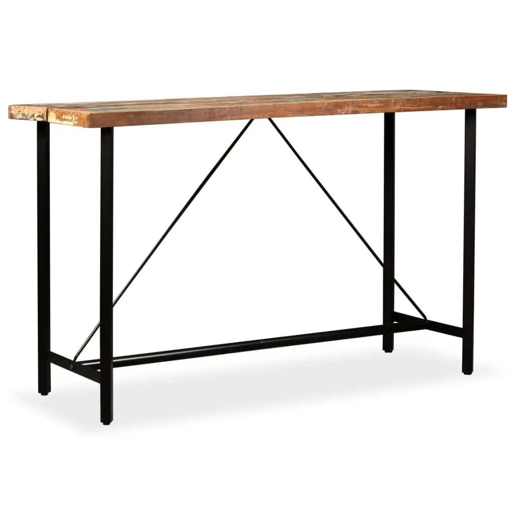 This cool bar set has an industrial look and will make a distinctive addition to any home, bar or restaurant. The bar table is made of solid reclaimed wood, which means that it has the characteristics of different woods like Sheesham, teak, mango wood, acacia, etc. Reclaimed wood is solid, stable, durable and beautiful. Signs of wear and craftsmanship give each piece a unique look. It is fully handmade. The strong steel legs make the bar table very sturdy and durable and add to its spectacular industrial style. Important note: The wood grains and colours may vary from piece to piece, making each piece unique; the delivery is random. The bar stools are upholstered in the soft-to-the-touch, genuine leather and canvas, which makes the stools extremely durable and comfortable. The strong steel legs make the stools very sturdy and add to their spectacular industrial style. Delivery includes 1 bar table and 8 bar stools. Assembly is easy.
