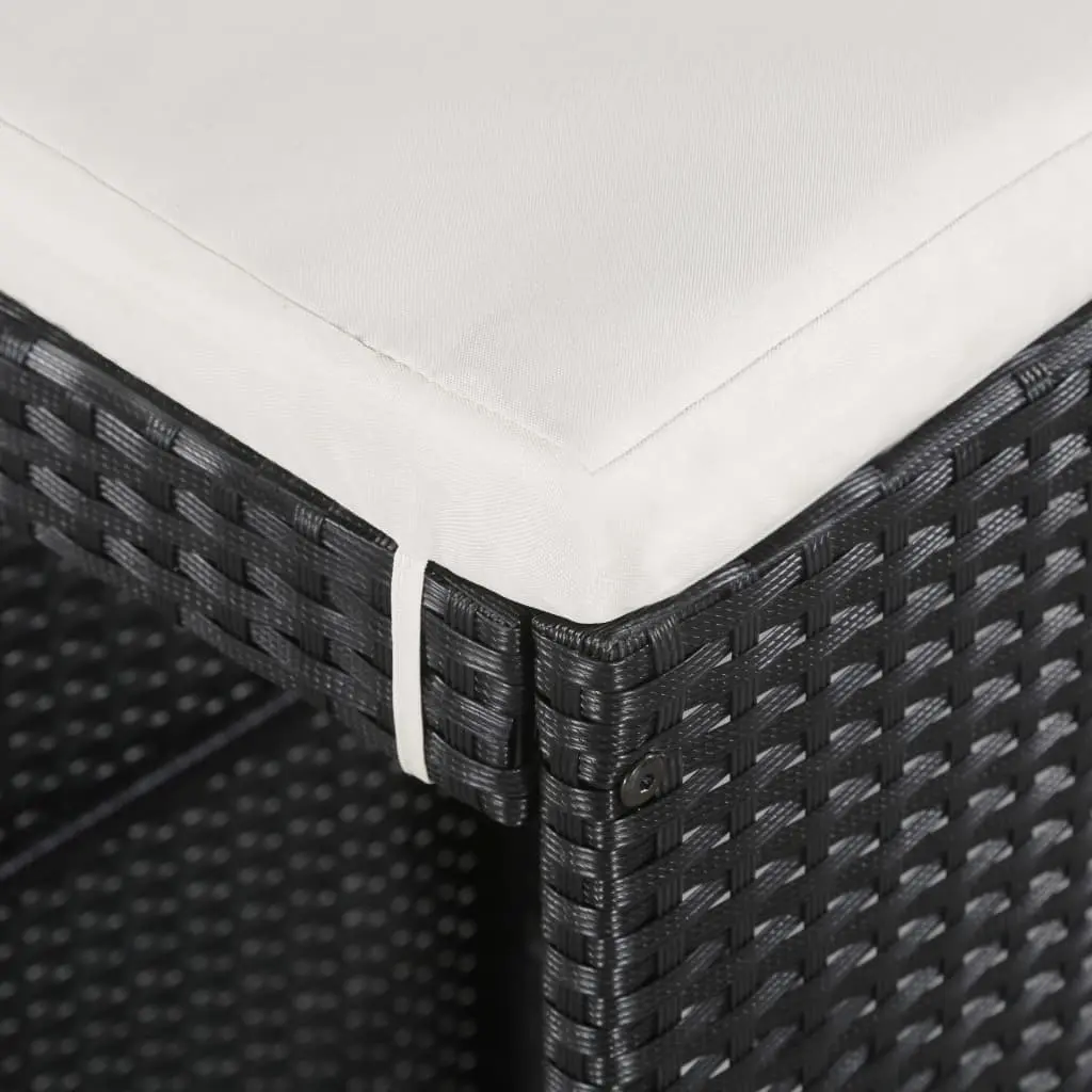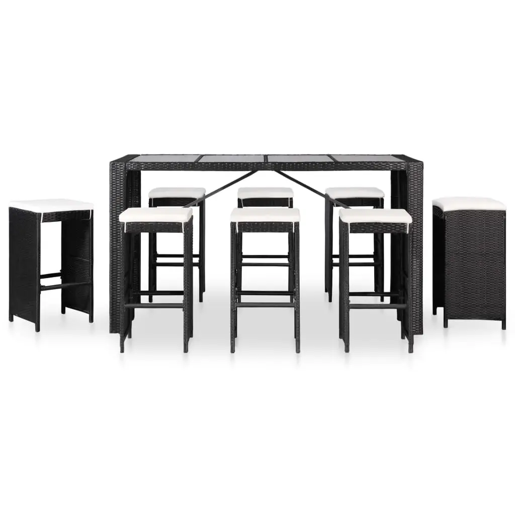 This poly rattan outdoor dining set, consisting of 1 bar table, 8 bar stools and 8 seat cushions, will become an eye-catcher in your garden. Thanks to the water-resistant PE rattan, the patio bar set is easy to clean, hardwearing and suitable for daily outdoor use. It comes with a contemporary table to match our elegant stools. The powder-coated steel frame makes the set sturdy and stable, but since the construction is also lightweight, all items are easy to move around to suit any setting. It is also delivered with highly comfortable, thickly-padded seat cushions for the ultimate comfort. The low-maintenance polyester covers can also be removed and washed. This set is easy to assemble. Note: We recommend covering the set during rain, snow and frost for its best service to last.