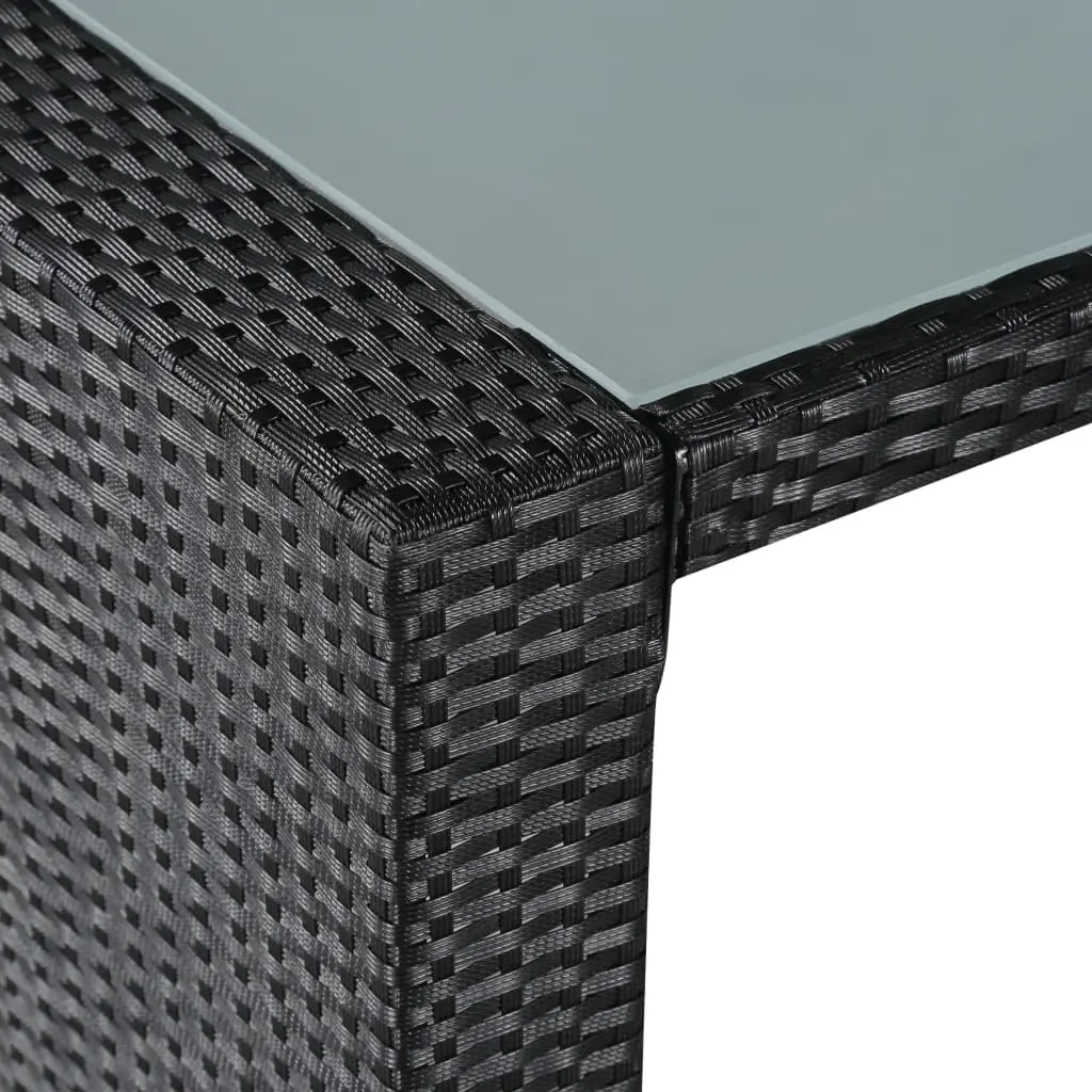 - Material: PE (polyethylene) rattan + glass tabletop + powder-coated steel frame