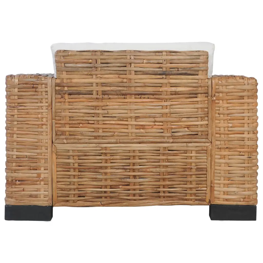 This natural rattan armchair combines style and functionality, and will make a great addition to your home. Thanks to the high-quality natural rattan material, the armchair is easy to clean, hardwearing and suitable for daily use. It features a durable, sturdy wooden frame. The thick seat and back cushions and pillows are very conformable and washable thanks to their removable covers. In addition, the wide armrests add to your seating comfort. Delivery includes 1 armchair, 1 seat cushion, 1 back cushion.
