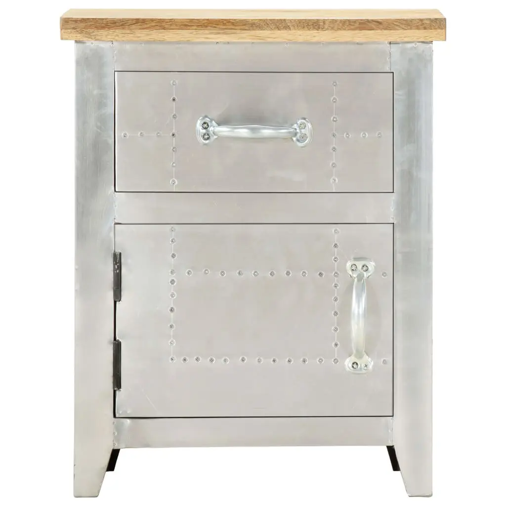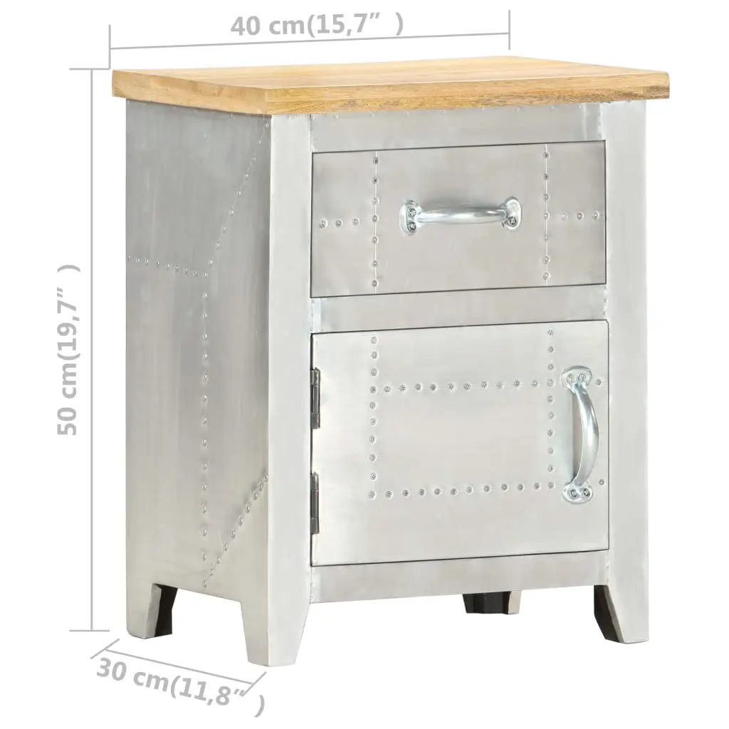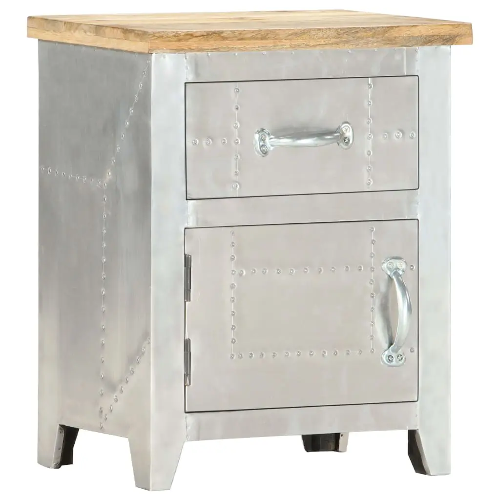 Our Aviator bedside table showcases vintage charm combined with industrial styling and adds a touch of class to any bedroom. It also brings a subtle flavour of aviation design to your space. This table can also be used as couch side table, end table, telephone stand, etc. Made of solid mango wood with polished aluminium cladding, it is stable, durable and easy to clean. This aircraft side table has one door and one drawer for items like keys, remote controls, magazines, notepads, pens, and other knick-knacks. The tabletop can be used to place food or drinks or to display decorative objects like photo frames, or even potted plants.
