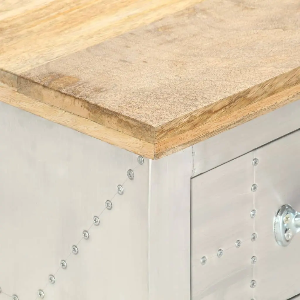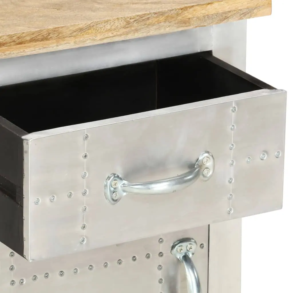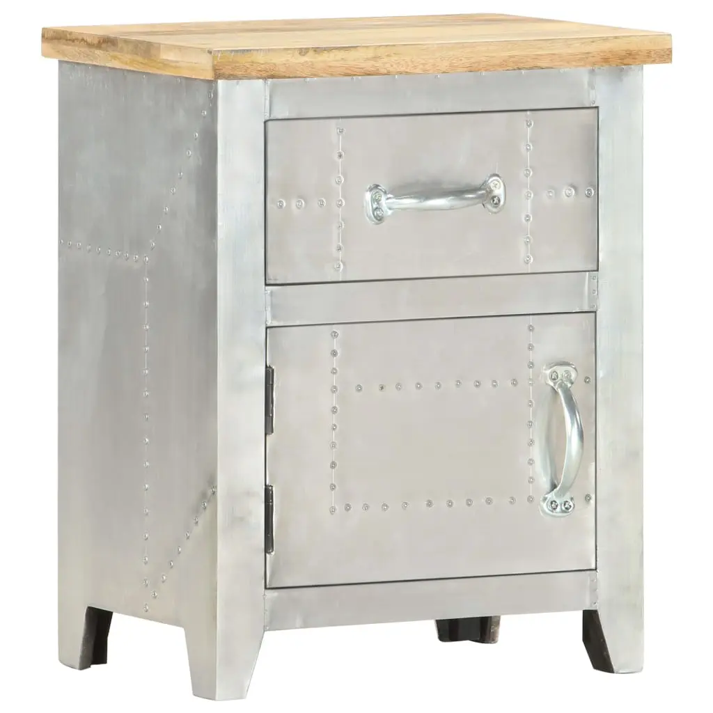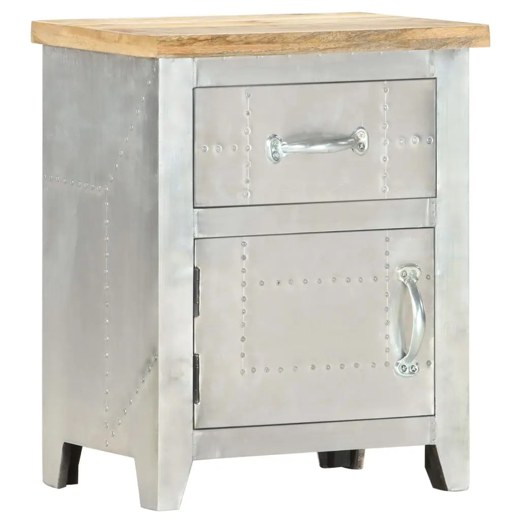 Our Aviator bedside table showcases vintage charm combined with industrial styling and adds a touch of class to any bedroom. It also brings a subtle flavour of aviation design to your space. This table can also be used as couch side table, end table, telephone stand, etc. Made of solid mango wood with polished aluminium cladding, it is stable, durable and easy to clean. This aircraft side table has one door and one drawer for items like keys, remote controls, magazines, notepads, pens, and other knick-knacks. The tabletop can be used to place food or drinks or to display decorative objects like photo frames, or even potted plants.